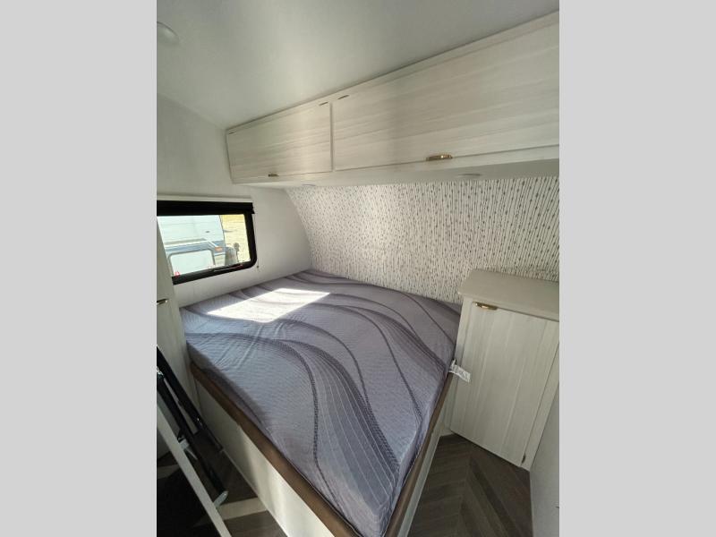 Load up your off-road toys with the ramp door into the 10' 5" garage area in this Ozark toy hauler! Once you reach your destination, unhook your toys from the tie-downs and set up the Stow N Load bunk system above the 30" x 72" sofa sleeper below. The kitchen has everything you need to prepare your best home cooked meals including the deep stainless steel sink for an easy clean up and the 12V refrigerator. The full bathroom has a large shower pan so you can easily step in without worrying about a tub. Enjoy a good night's rest on the front queen bed, and there is a wardrobe to keep your clothes looking nice.