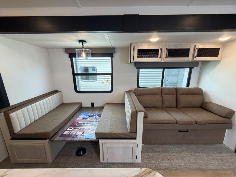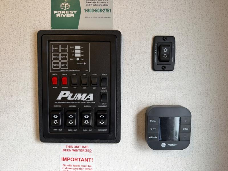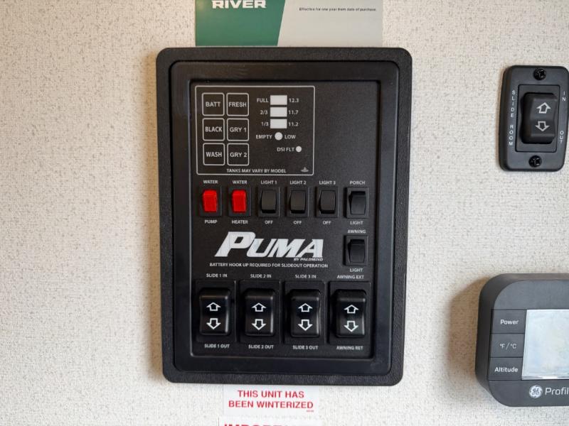 If you're looking for family-fun adventures, then you need one of these Forest River Puma travel trailers! They are built rugged, easy to tow, and jam packed with features. The Darco wrapped underbelly will help protect your unit, and the roof and side mount solar prep gives you the option to add off-grid power. Inside, the Congoleum linoleum will be easy to keep clean, and the night roller shades will provide privacy when it's time to turn in. You'll also enjoy an electric awning with an LED light strip plus an AM/FM/Bluetooth stereo and two outside speakers to keep the party going!