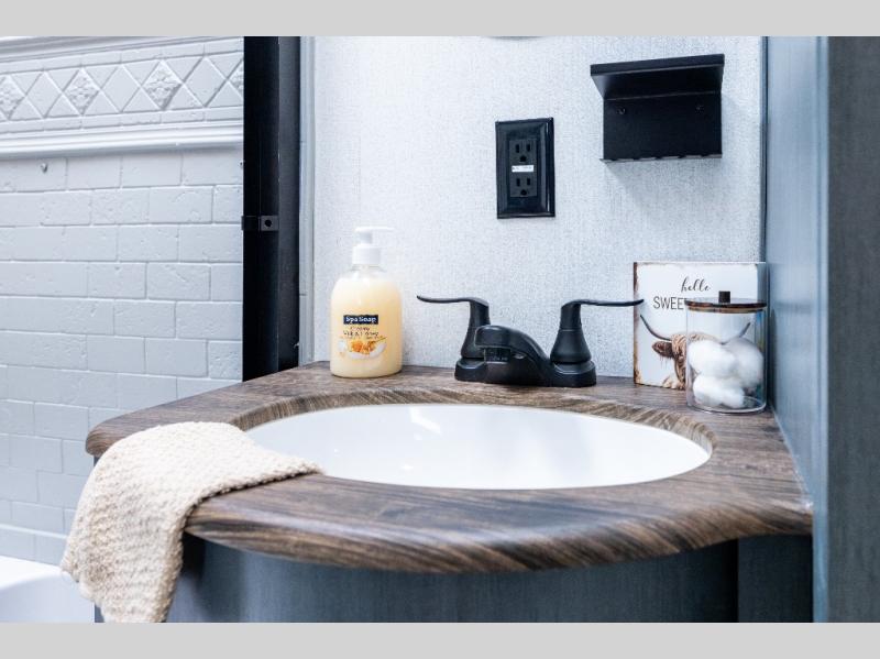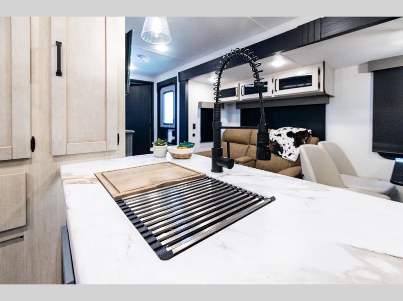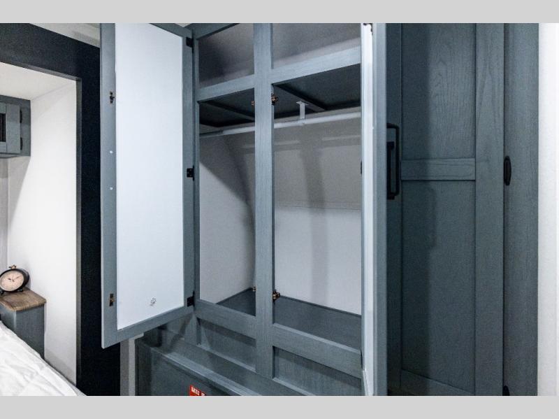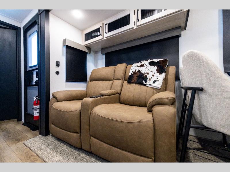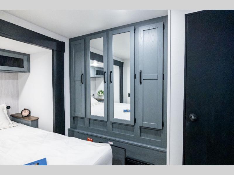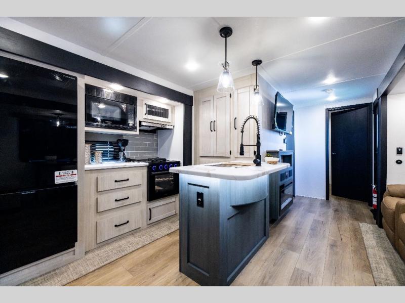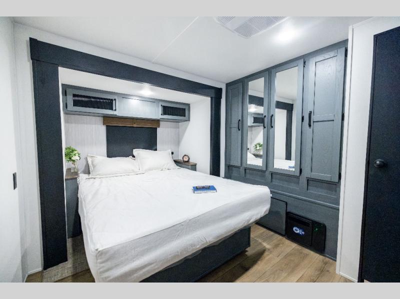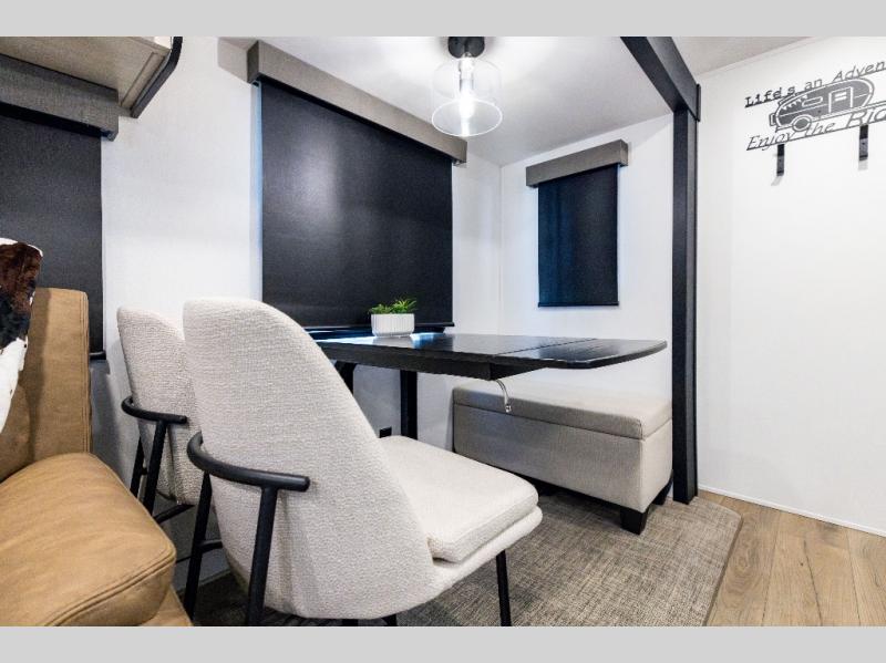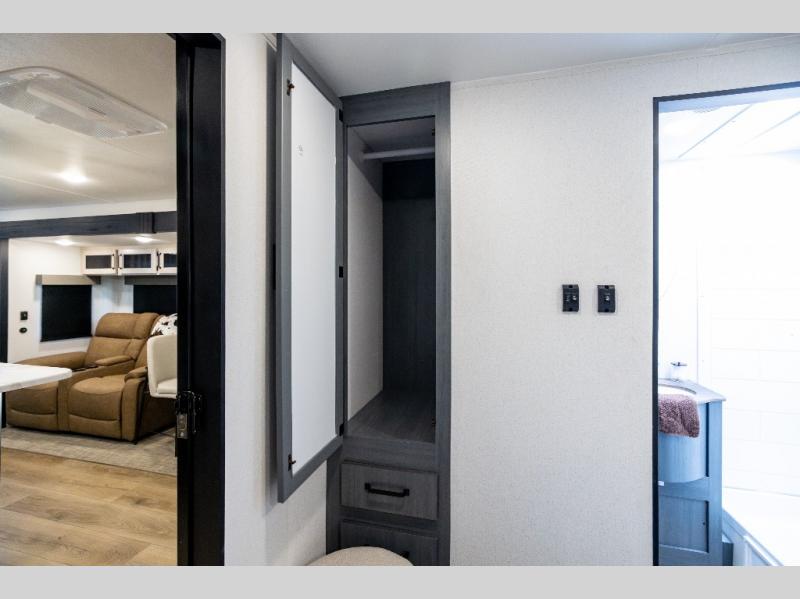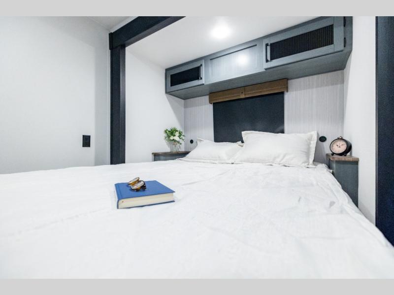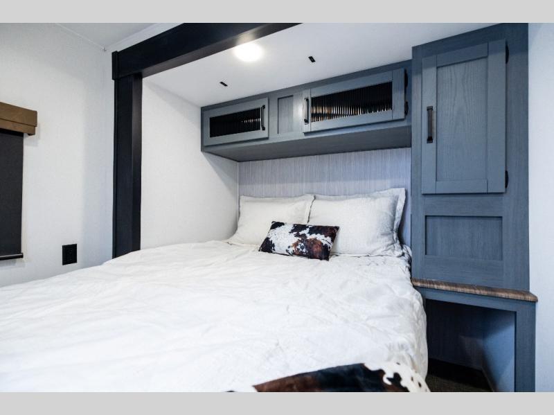 If you enjoy camping with friends or family, this travel trailer will be perfect for you! There are two bedrooms with queen bed slide outs and storage space, plus the rear bedroom includes its own full bath for added comfort. A bunkhouse suite option is also available if you choose the jiffy sofa with a bunk in place of the queen bed in the rear bedroom. Everyone can meet in the combined kitchen and living area that includes a counter peninsula, a spacious pantry, all the kitchen appliances to cook meals, plus a table with chairs and bench seating. There is also a sofa with overhead storage for more seating and sleeping space. Don't let this impressive travel trailer slip away!