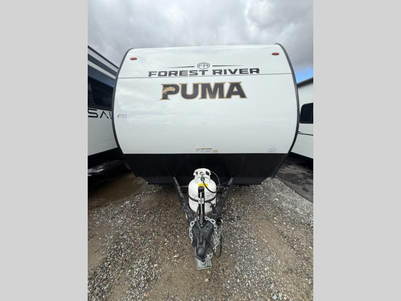 The Puma Camping Edition by Forest River offer an affordable travel trailer for rookie campers or seasoned RVers! They are built with 5/8" tongue and groove plywood flooring and a front diamond plate for added protection. There are also exterior magnetic baggage door latches, back up camera prep, a battery disconnect. Head inside to find Thermofoil countertops with a smooth drop edge, bedroom USB ports and outlets, and pleated shades in the living room.