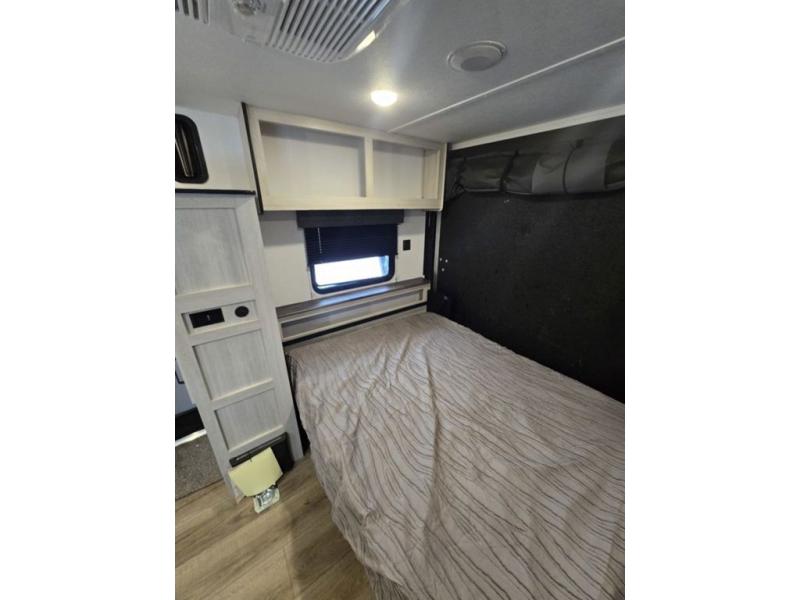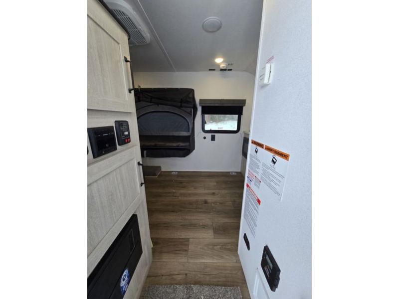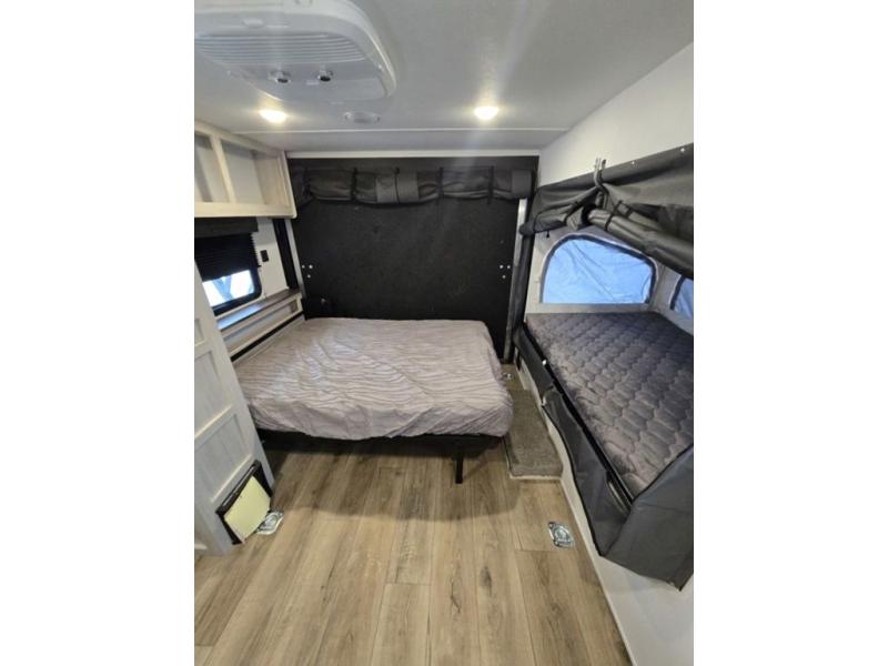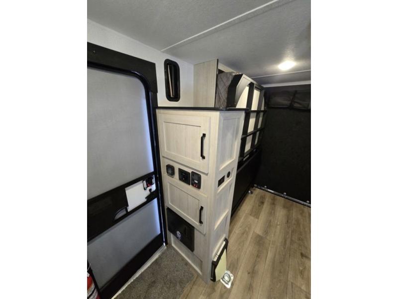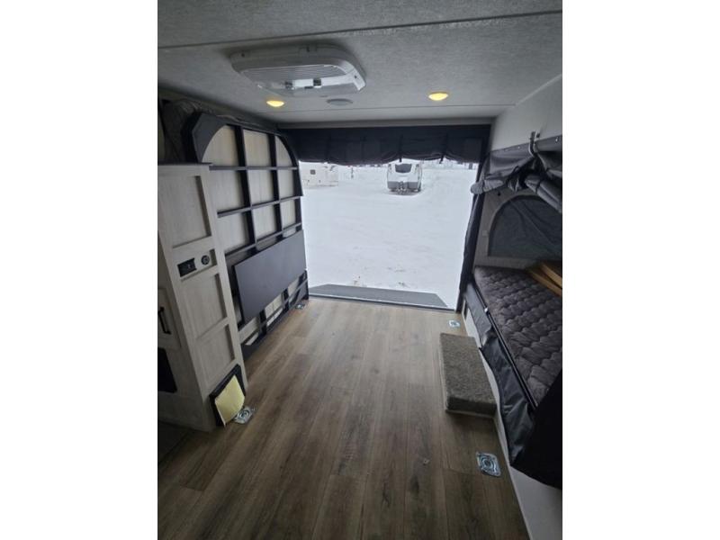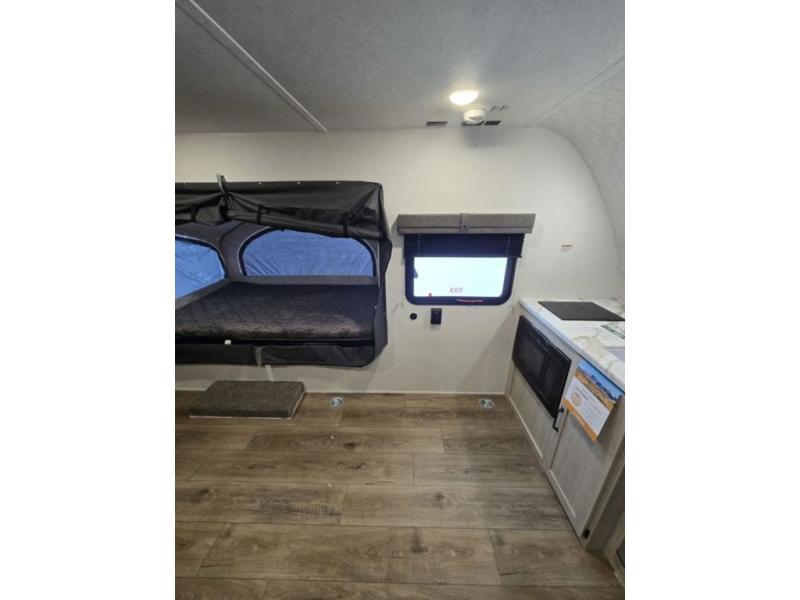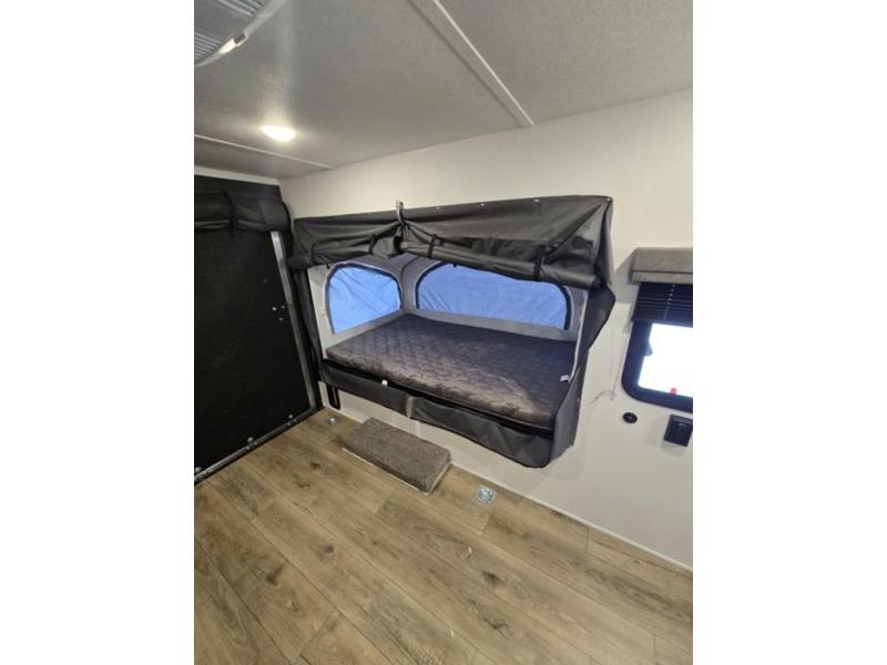 The outdoor enthusiast has met their match with this lightweight toy hauler. Once you've unloaded your bikes or kayaks using the ramp door, you can take a rest on the 54" x 74" Murphy bed, make lunch in the front corner kitchen, or freshen up in the 23" x 38" shower combo! And an optional fold-out tent bed is available if you're needing additional sleeping space!