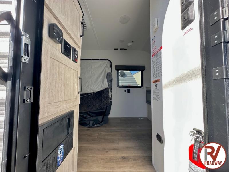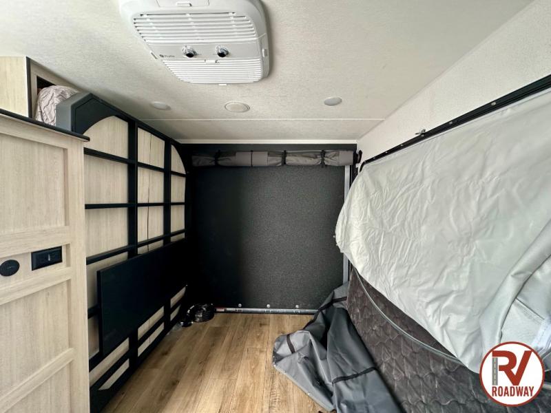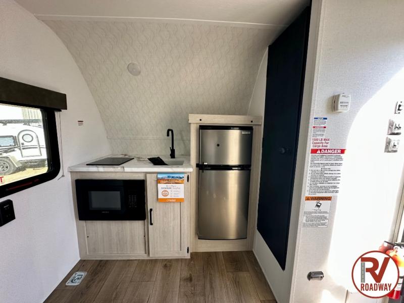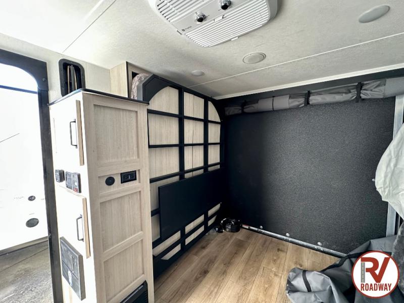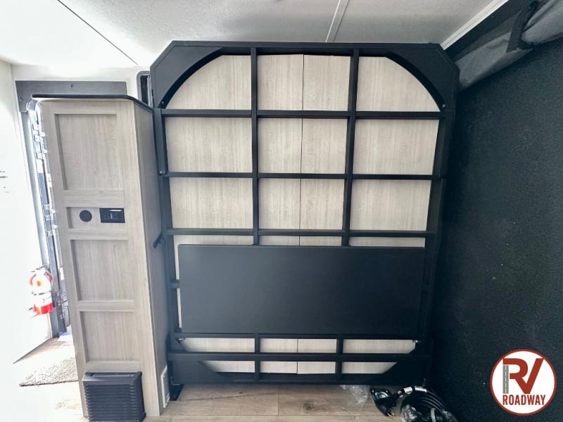 The outdoor enthusiast has met their match with this lightweight toy hauler. Once you've unloaded your bikes or kayaks using the ramp door, you can take a rest on the 54" x 74" Murphy bed, make lunch in the front corner kitchen, or freshen up in the 23" x 38" shower combo! And an optional fold-out tent bed is available if you're needing additional sleeping space!
