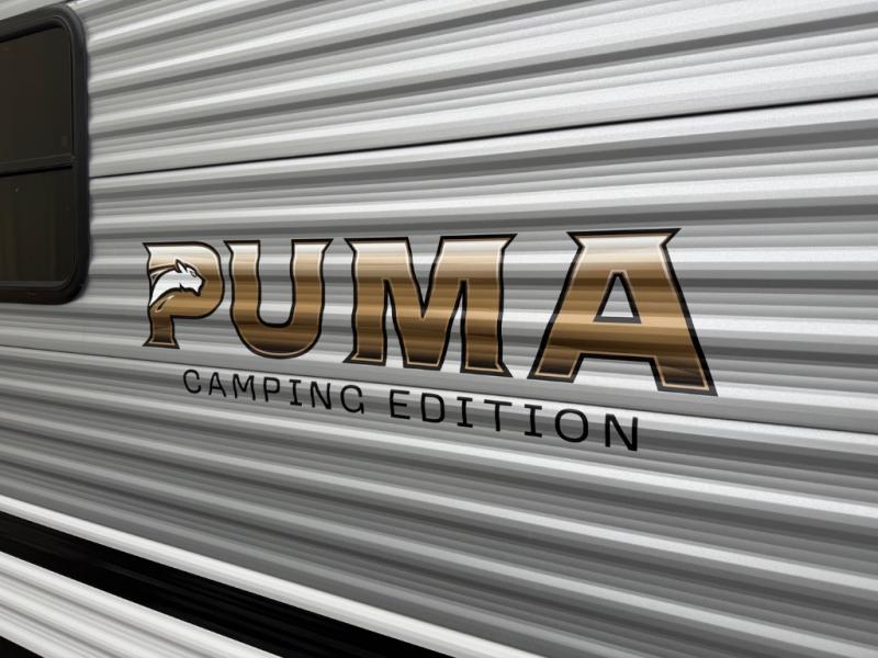 The Puma Camping Edition by Forest River offer an affordable travel trailer for rookie campers or seasoned RVers! They are built with 5/8" tongue and groove plywood flooring and a front diamond plate for added protection. There are also exterior magnetic baggage door latches, back up camera prep, a battery disconnect. Head inside to find Thermofoil countertops with a smooth drop edge, bedroom USB ports and outlets, and pleated shades in the living room.