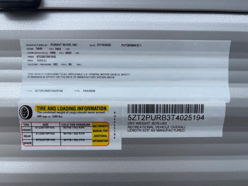 New 2026 Forest River RV Puma Camping Edition 263BHCE Travel Trailer