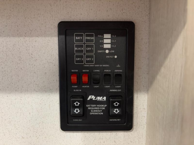 The Puma Camping Edition by Palomino offer an affordable travel trailer for rookie campers or seasoned RVers! They are built with 5/8" tongue and groove plywood flooring and a front diamond plate for added protection. There are also exterior clamp style door latches, back up camera prep, and 20 lb. LP bottles. Head inside to find Thermofoil countertops with a smooth drop edge, bedroom USB ports and outlets, and a GE appliance and kitchen package.