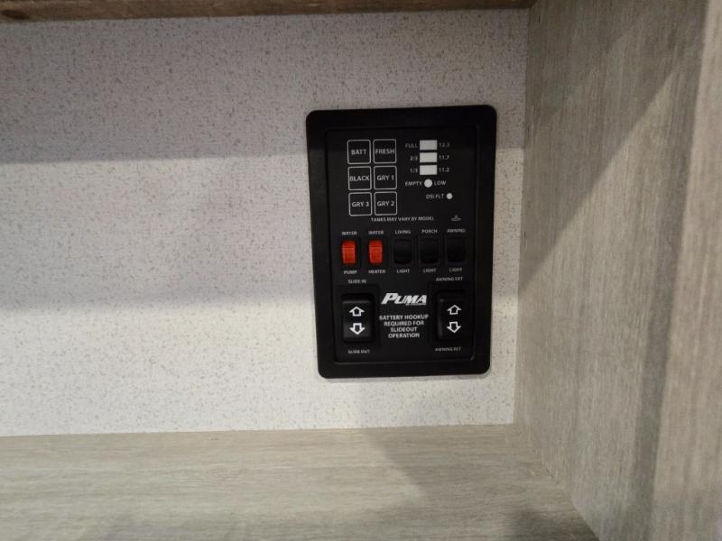 The Puma Camping Edition by Palomino offer an affordable travel trailer for rookie campers or seasoned RVers! They are built with 5/8" tongue and groove plywood flooring and a front diamond plate for added protection. There are also exterior clamp style door latches, back up camera prep, and 20 lb. LP bottles. Head inside to find Thermofoil countertops with a smooth drop edge, bedroom USB ports and outlets, and a GE appliance and kitchen package.