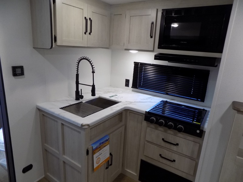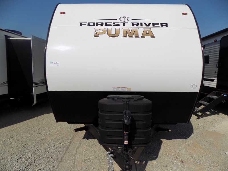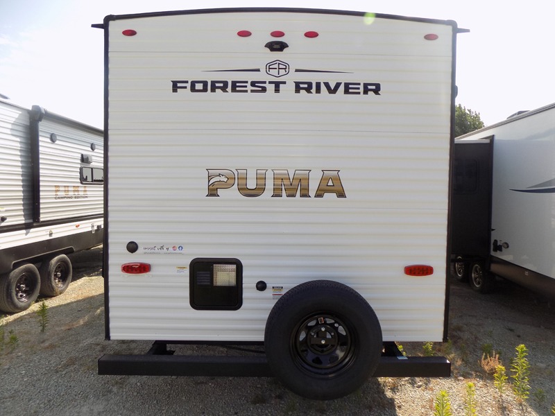 The Puma Camping Edition by Palomino offer an affordable travel trailer for rookie campers or seasoned RVers! They are built with 5/8" tongue and groove plywood flooring and a front diamond plate for added protection. There are also exterior clamp style door latches, back up camera prep, and 20 lb. LP bottles. Head inside to find Thermofoil countertops with a smooth drop edge, bedroom USB ports and outlets, and a GE appliance and kitchen package.