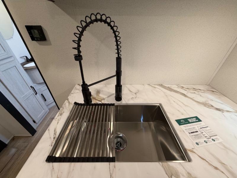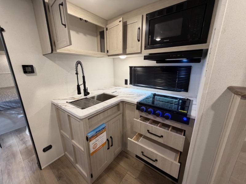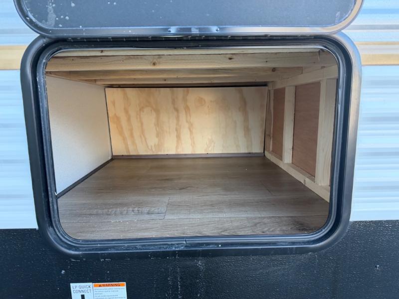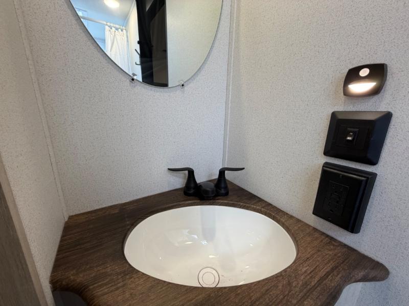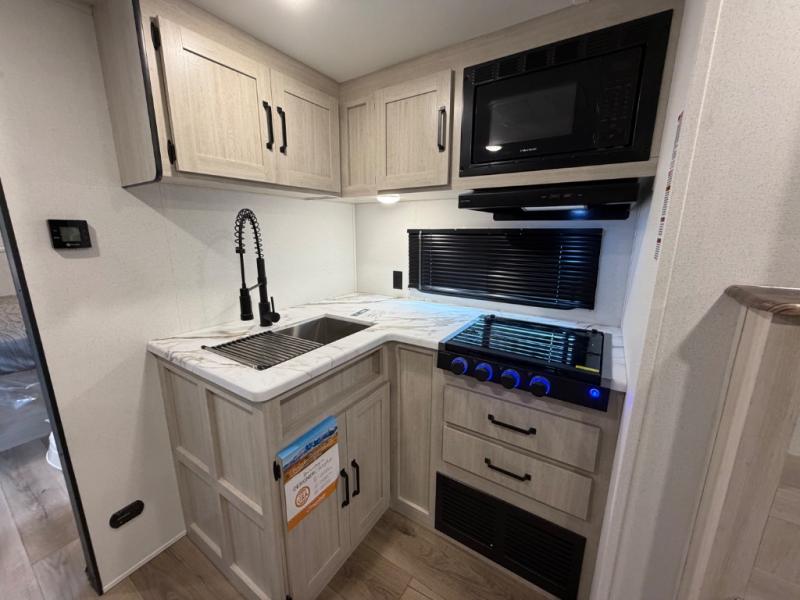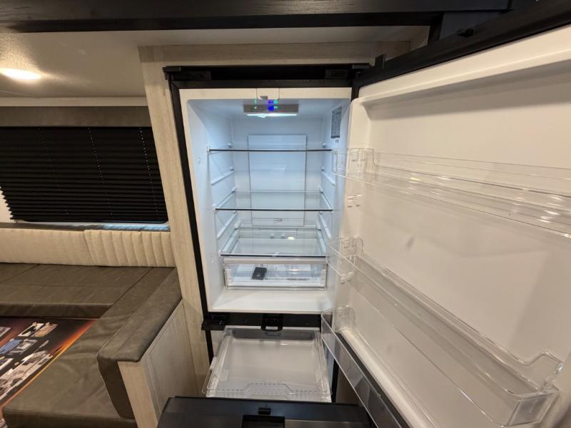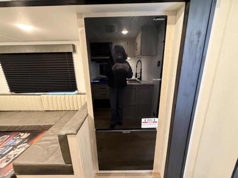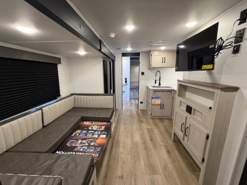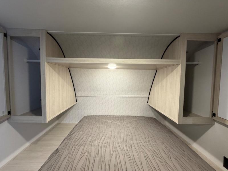 Your whole crew will love camping in this travel trailer since everyone can enjoy their own private space. The rear bunkhouses feature a private lower bunk room plus a private upper bunk room, each with their own door and a linen closet for storage space. The front master bedroom includes an RV queen bed, dual shirt closets, and easy access into the walk-thru bath. Head to the combined kitchen and living area to make dinner in the full kitchen, dine around the U-shaped dinette slide, and enjoy the fireplace! Outside, an optional micro kitchen with a grill can be added if you choose, and you'll find outside storage compartments to keep all your gear secure!