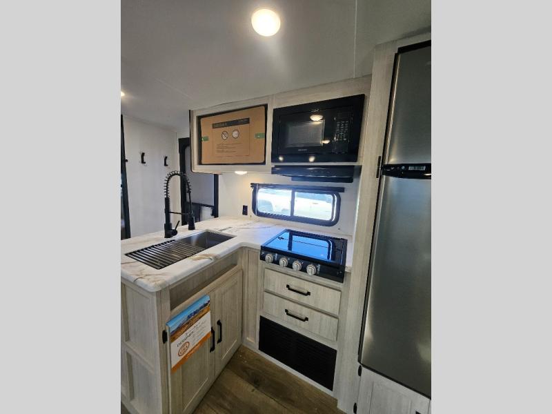 The Puma Camping Edition by Forest River offer an affordable travel trailer for rookie campers or seasoned RVers! They are built with 5/8" tongue and groove plywood flooring and a front diamond plate for added protection. There are also exterior magnetic baggage door latches, back up camera prep, a battery disconnect. Head inside to find Thermofoil countertops with a smooth drop edge, bedroom USB ports and outlets, and pleated shades in the living room.