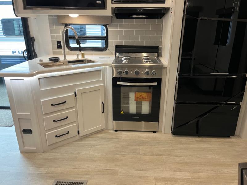 Each Puma Destination trailer by Palomino is designed to give you unforgettable getaways to the destination of your choice! The required Value Shopper Loft Package includes Congoleum designer linoleum, night roller shades, LED lighting, and a 24" stainless steel oven with a four burner stove so you can make meals just like you would at home. The tankless water heater is another feature you won't want to camp without, and there is WiFi prep, solar prep, plus optional washer and dryer prep for the option to further customize your trailer. An outside shower is included with the required Loft Package, along with two exterior speakers, solid surface countertops, four stabilizer jacks, and more!