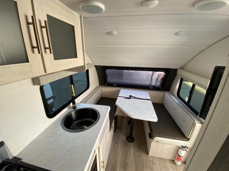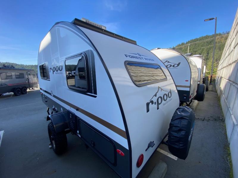 With any R-Pod travel trailer by Forest River, you will enjoy affordable luxury at the lowest tow weight in its class! There is a sealed underbelly with forced heat, a curved dual-pane acrylic front window with a bug screen and night shade, plus a large roof mounted solar panel for off-grid capabilities. The 15K A/C unit will keep you comfortable during the summer camping months, and the tankless water heater will provide endless hot showers after hiking, biking, swimming and more! Each model also includes a black glass friction hinge entrance door, roof ladder prep, exterior motion lighting, plus a hot and cold exterior spray port to wash off sand from the beach. Inside, you'll enjoy seamless Surf-X kitchen countertops, blackout roller shades, and a central vacuum system for hassle-free cleaning!