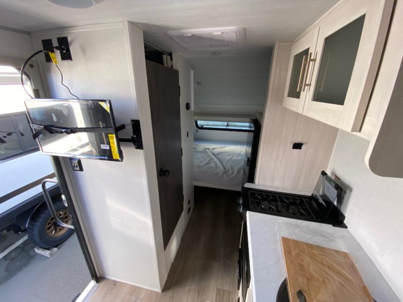 This travel trailer by Forest River is perfect for your weekend getaways. You can easily sleep three people with a rear queen bed and the front dinette folded down for the little ones. This unit also includes a 12V TV to enjoy while you're stuck inside on a rainy day. You will find a convenient wet bath where you can easily get ready for your day of fun and adventure! This model also includes the Hood River Edition that comes with Mud Legend all terrain tires with TPMS, advanced ground clearance, a MaxxAir vent cover, and 12V tank heaters!
