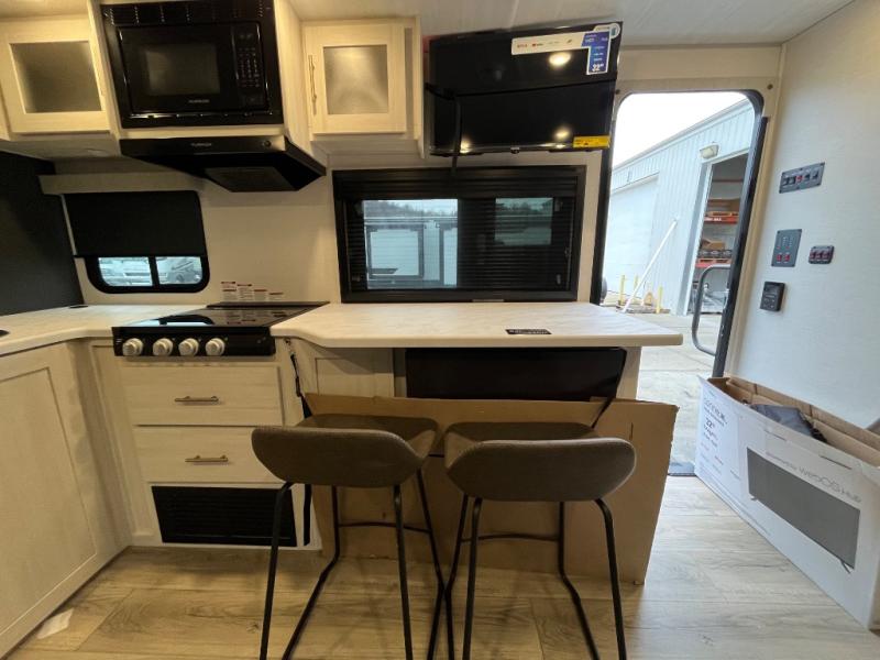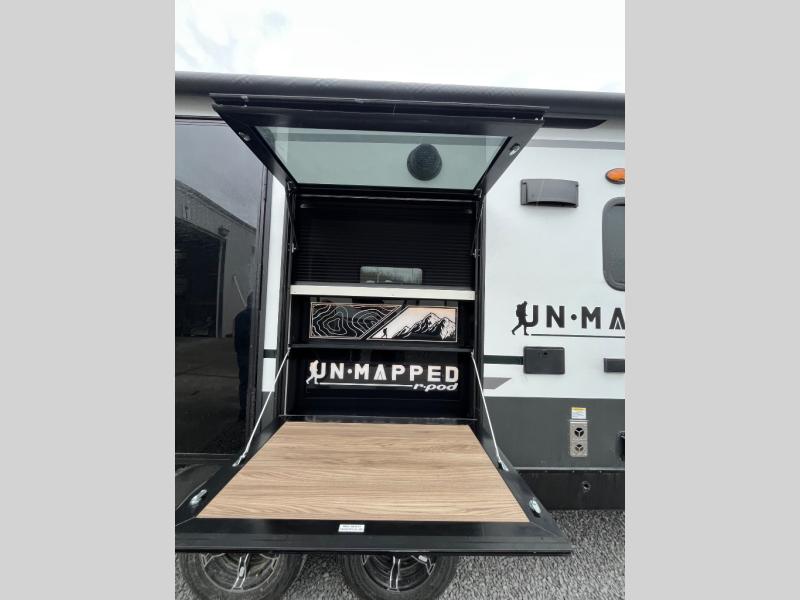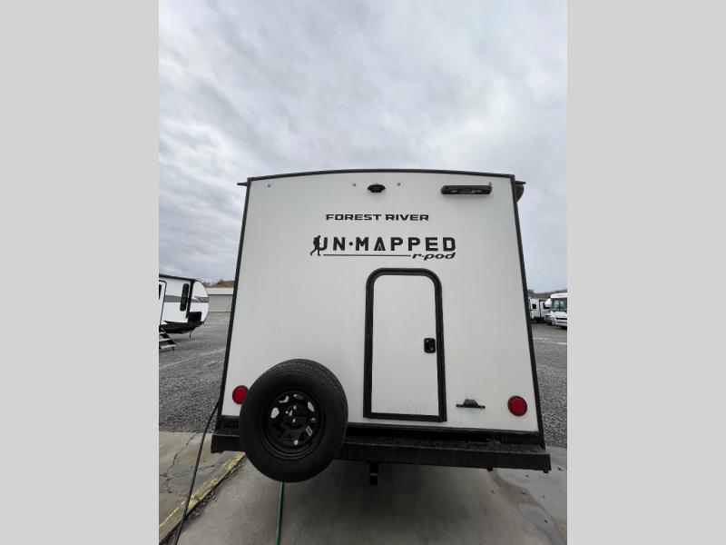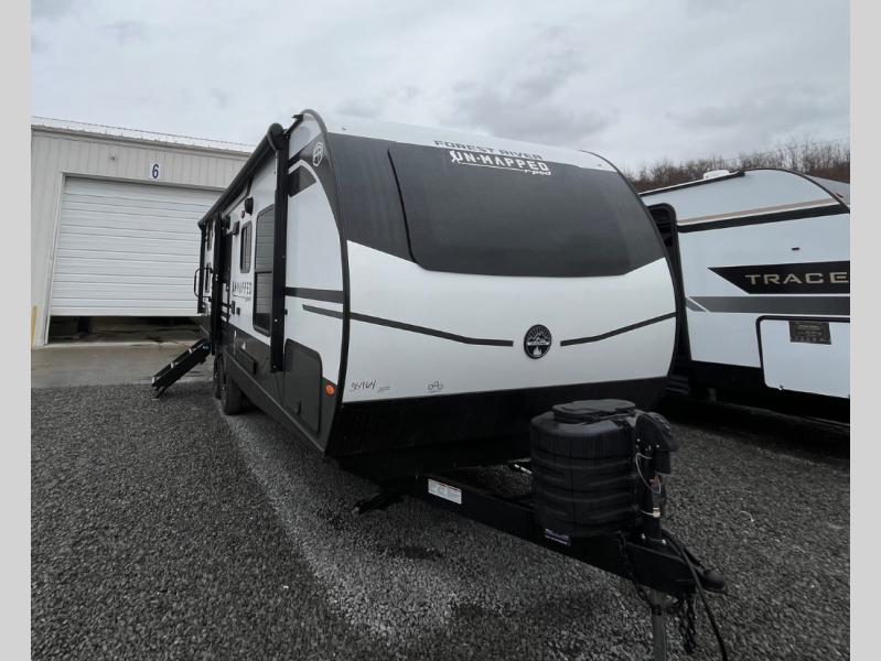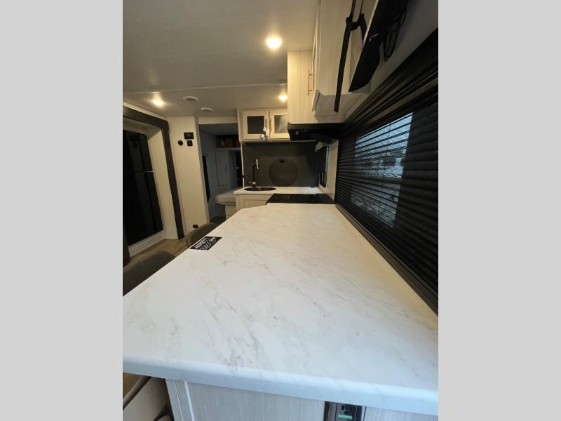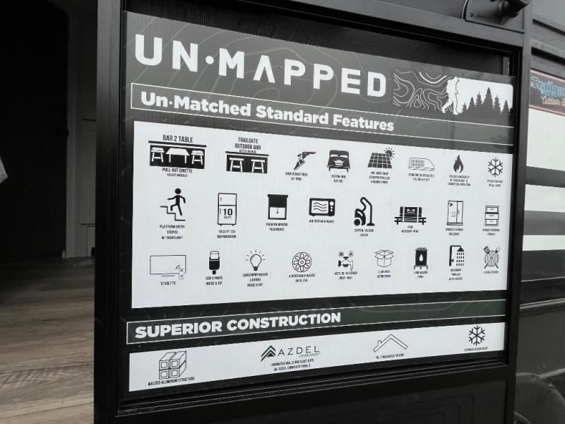 The Forest River Un-Mapped travel trailers deliver an unparalleled travel experience thanks to their incredible features, starting with the aluminum-framed floor with block foam insulation that ensures exceptional structural integrity and thermal efficiency, along with the sealed underbelly with forced heat & radiant foil barrier that provides superior insulation and heat management, and the power tongue jack facilitates easy maneuvering and stabilization of the trailer. Plus, the 30 Amp charge controller with solar inverter prep is ready for integration with solar power systems, catering to eco-conscious travelers seeking off-grid capabilities. Inside, you will find seamless Surf-X kitchen countertops that offer a sleek, durable surface and are easy to maintain for busy travelers. Further, the blackout roller shades will add privacy and light control for restful nights and cozy daytime retreats.