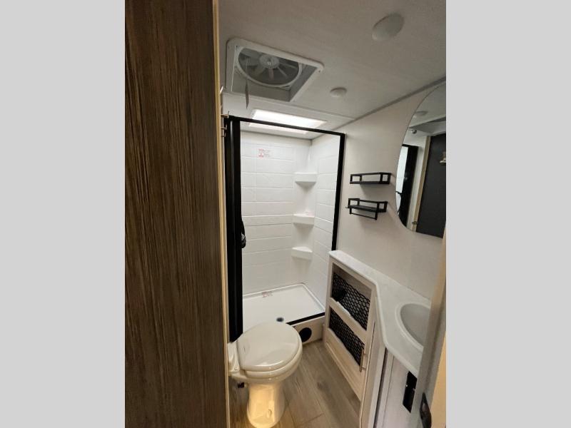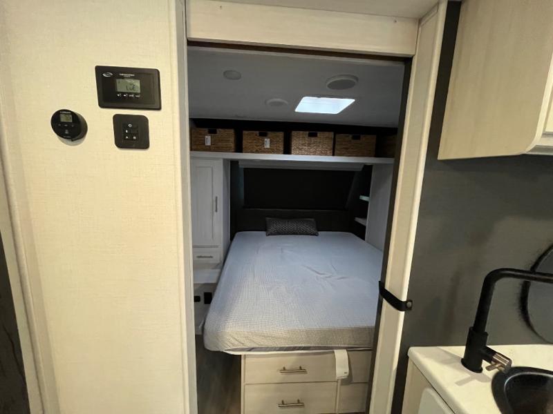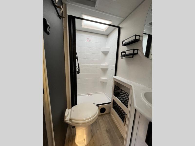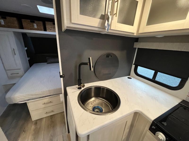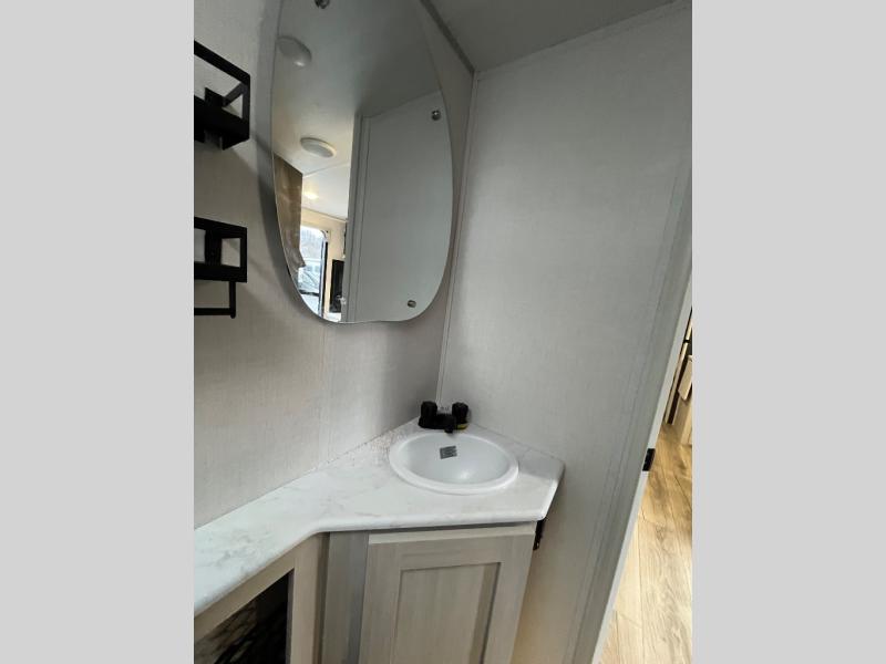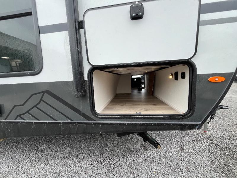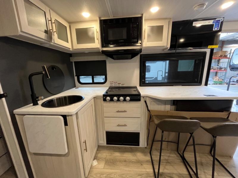 The Forest River Un-Mapped travel trailers deliver an unparalleled travel experience thanks to their incredible features, starting with the aluminum-framed floor with block foam insulation that ensures exceptional structural integrity and thermal efficiency, along with the sealed underbelly with forced heat & radiant foil barrier that provides superior insulation and heat management, and the power tongue jack facilitates easy maneuvering and stabilization of the trailer. Plus, the 30 Amp charge controller with solar inverter prep is ready for integration with solar power systems, catering to eco-conscious travelers seeking off-grid capabilities. Inside, you will find seamless Surf-X kitchen countertops that offer a sleek, durable surface and are easy to maintain for busy travelers. Further, the blackout roller shades will add privacy and light control for restful nights and cozy daytime retreats.