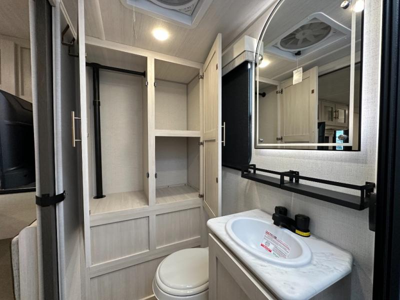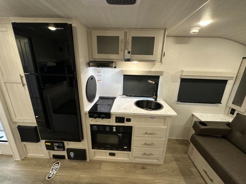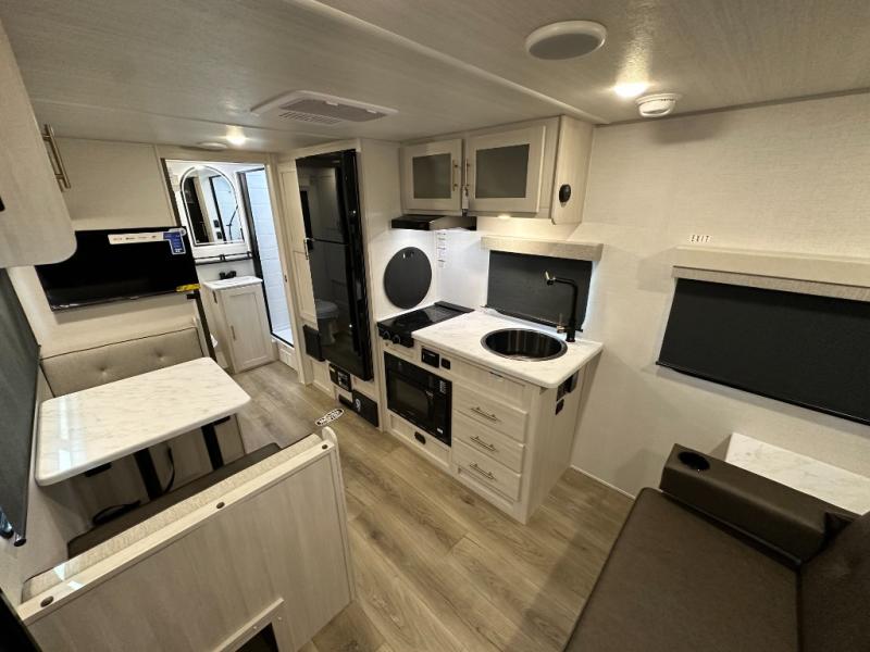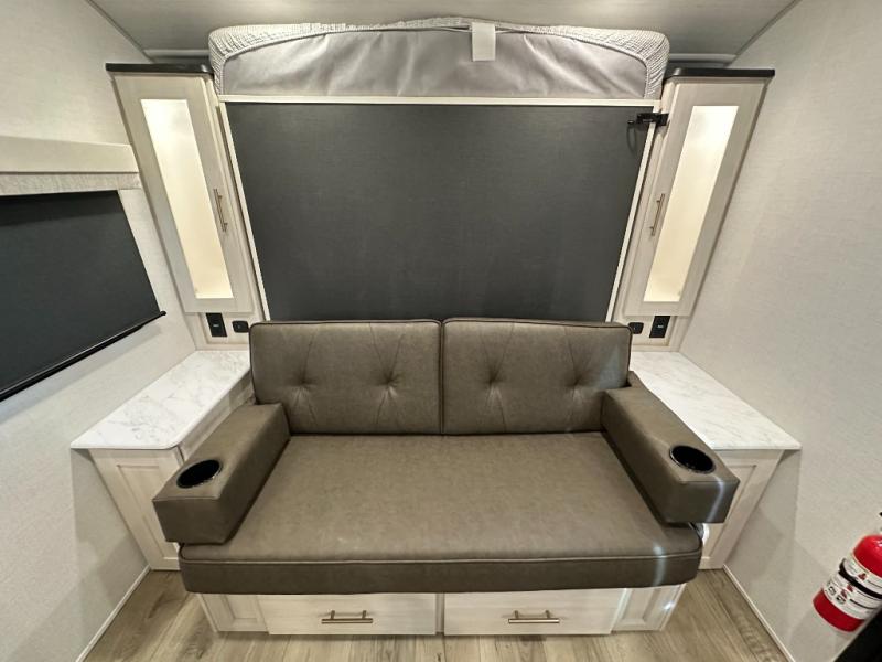 You're going to love all of the conveniences and versatility of this travel trailer! The front Murphy bed folds away to reveal the sofa which gives you a comfortable place to sit during the day and to sleep at night too. The rear full bath features everything you will need to get squeaky clean each morning as well as a large linen closet for clean towels. After you have whipped up your best meal with the two-burner cooktop, you can head to the booth dinette and enjoy eating it there comfortably. This model also includes the Hood River Edition that comes with Mud Legend all terrain tires with TPMS, a MaxxAir vent cover, and 12V tank heaters!