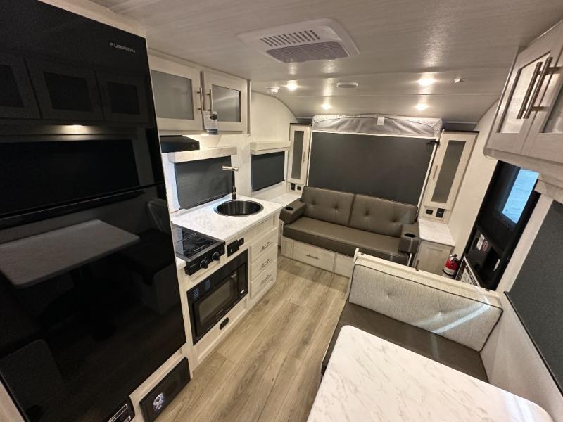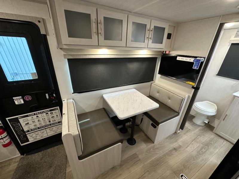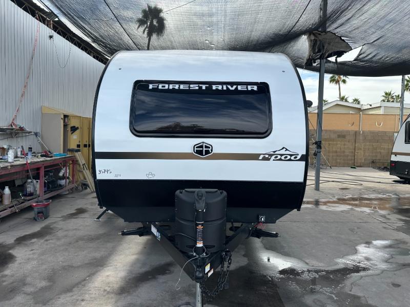 With any R-Pod travel trailer by Forest River, you will enjoy affordable luxury at the lowest tow weight in its class! There is a sealed underbelly with forced heat, a curved dual-pane acrylic front window with a bug screen and night shade, plus a large roof mounted solar panel for off-grid capabilities. The 15K A/C unit will keep you comfortable during the summer camping months, and the tankless water heater will provide endless hot showers after hiking, biking, swimming and more! Each model also includes a black glass friction hinge entrance door, roof ladder prep, exterior motion lighting, plus a hot and cold exterior spray port to wash off sand from the beach. Inside, you'll enjoy seamless Surf-X kitchen countertops, blackout roller shades, and a central vacuum system for hassle-free cleaning!