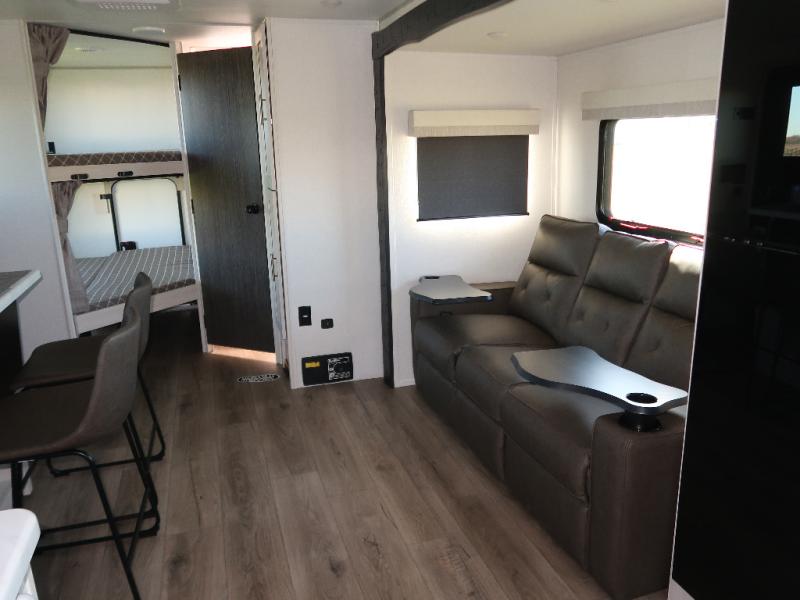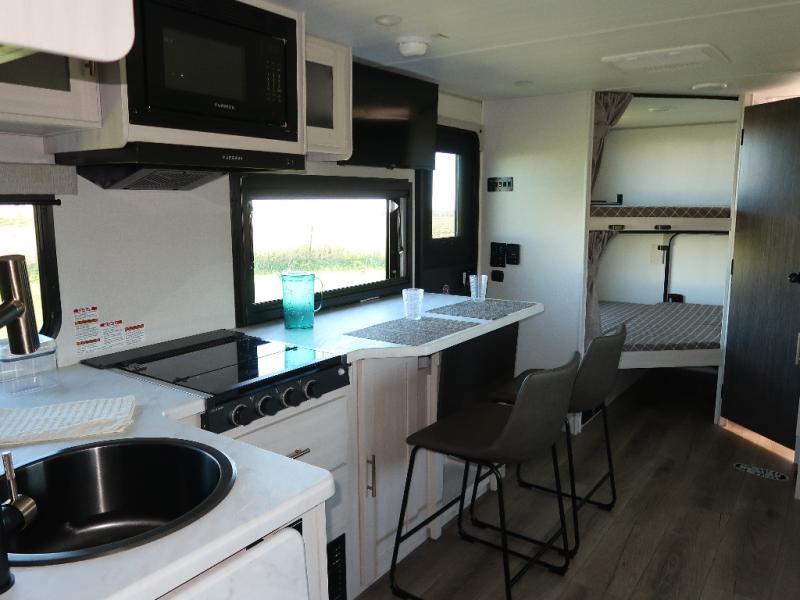 Brand NEW Make!!! Single Slide Out, Front Bedroom/Rear Bunk/Bathroom Floorplan, Outdoor Camp Kitchen, Trailgate Outdoor Bar Window, Goodyear Tires, 21' Power Patio Awning, King Island Bed, LED 12V TV, 2-52"x72" Double Bunk Beds, Central Vacuum, 400 Watt Solar Panel, Enclosed/Heated Underbelly, Bar 2 Table Pull Out Dinette, Hot/Cold Outside Shower, Rear Storage Door, 15,000BTU Air Conditoner, Air Fryer/Microwave