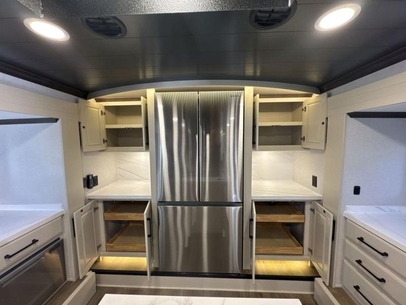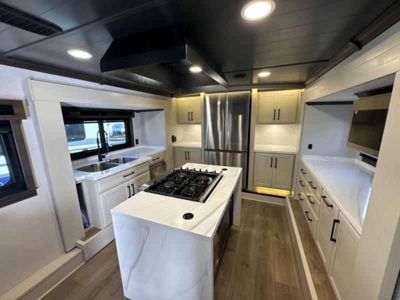 The Forest River RiverStone fifth wheels and toy haulers are luxurious units that have it all! You'll find an automatic six-point hydraulic level-up system to keep your unit in place, and there is preparation for a four-camera observation system. The TravlFi Journey XTR 4G/LTE router and WiFi extender will help you stay connected to the outside world, and you'll never have to overpack again since the Splendid “Astral” stackable washer and dryer will let you clean the small amount of clothes you've brought with you. Another high luxury is the Fischer Paykal dishwasher which will allow you to spend more time enjoying your camp life and less time cleaning up. Each unit is built with a LCI Road Armour suspension system, dual-pane frameless windows, a full docking station, a 200W solar panel, and a BMPro touch control system.