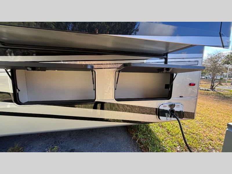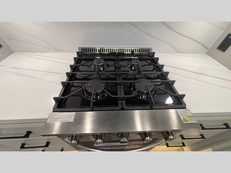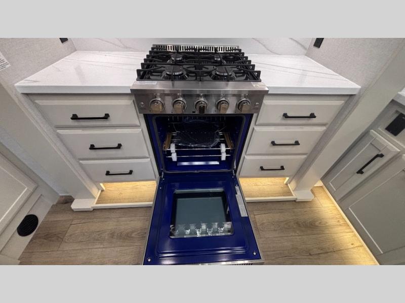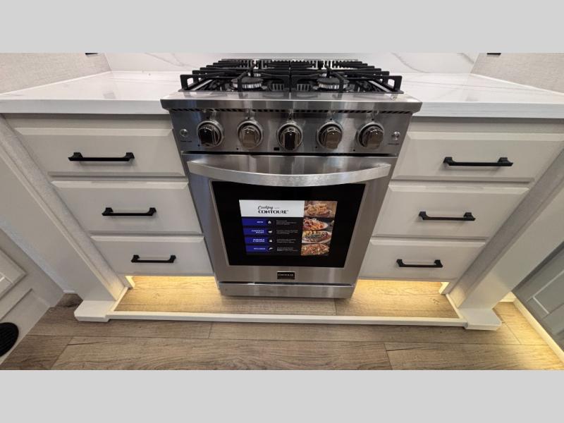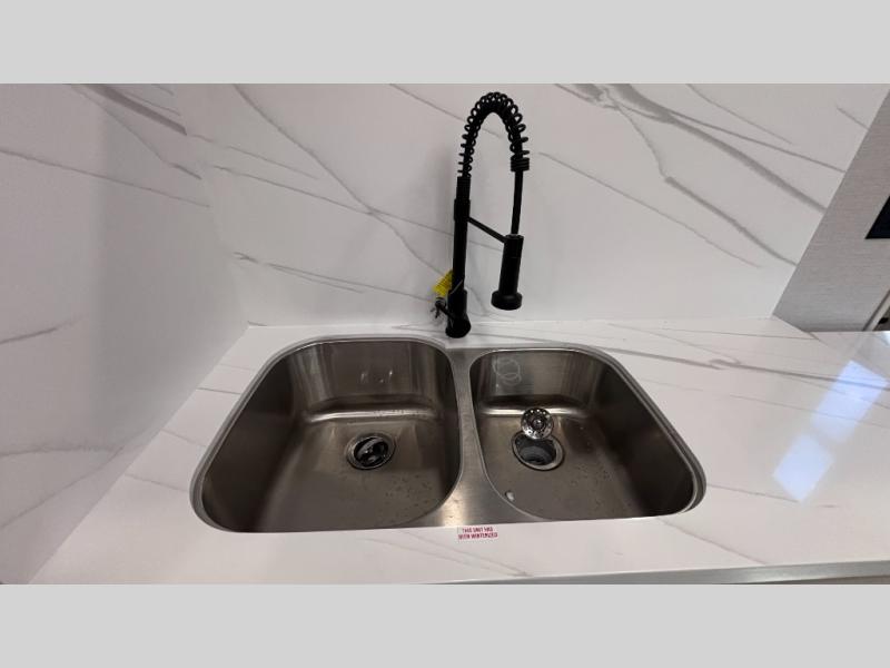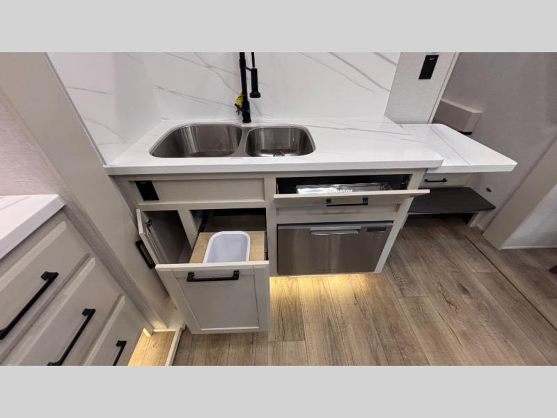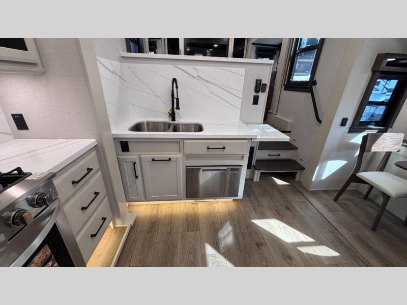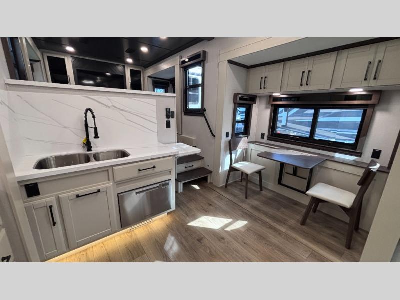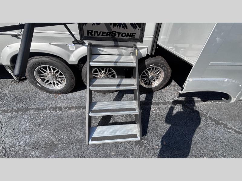 The Forest River RiverStone fifth wheels and toy haulers are luxurious units that have it all! You'll find an automatic six-point hydraulic level-up system to keep your unit in place, and there is preparation for a four-camera observation system. The TravlFi Journey XTR 4G/LTE router and WiFi extender will help you stay connected to the outside world, and you'll never have to overpack again since the Splendid “Astral” stackable washer and dryer will let you clean the small amount of clothes you've brought with you. Another high luxury is the Fischer Paykal dishwasher which will allow you to spend more time enjoying your camp life and less time cleaning up. Each unit is built with a LCI Road Armour suspension system, dual-pane frameless windows, a full docking station, a 200W solar panel, and a BMPro touch control system.