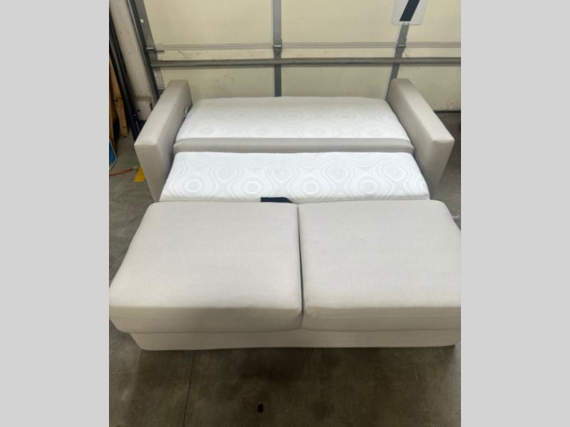 Load up and head out with this RiverStone toy hauler! You will have a great time enjoying the fresh outdoor air while you also enjoy the shade that comes from the 11' 6" and 18' electric awnings with LED lights. There is an exterior TV that you can watch if you don't have any other games you want to play, and you can access the below-floor garage by using the Zero Gravity ramp door in the back. If you don't need the desk to get some work done, you can switch it out for the optional E-Z glide sofa bed, and you already have a standard E-Z glide sofa bed sitting across from the desk. The fireplace keeps the living area cozy, and the dinette with two free-standing chairs in the kitchen overlooks the living area to give you another place to sit down and socialize.