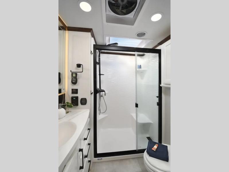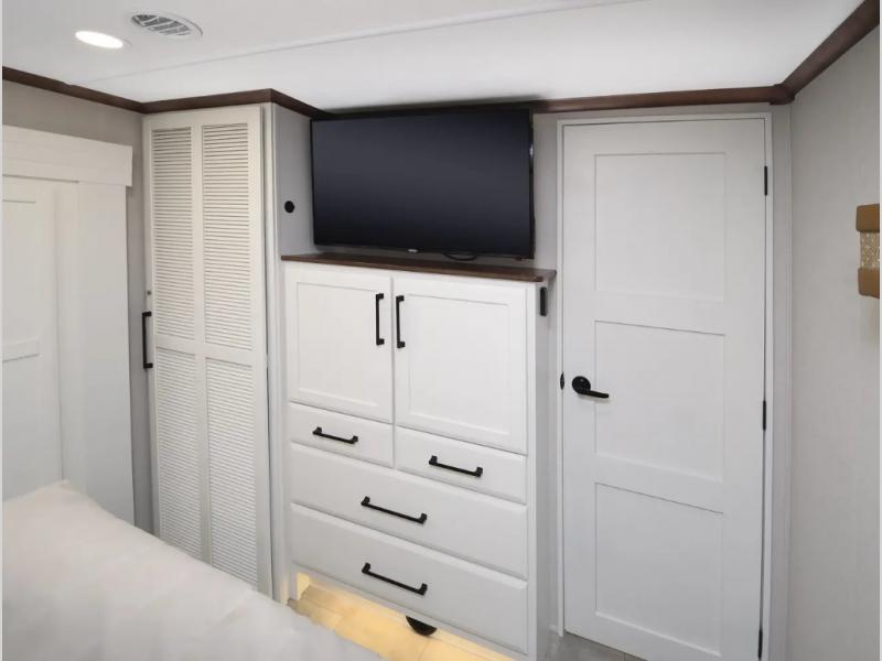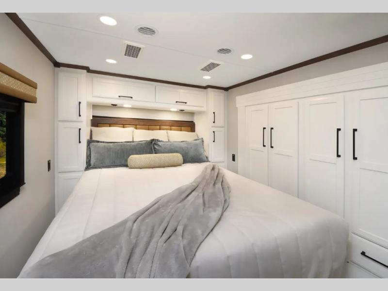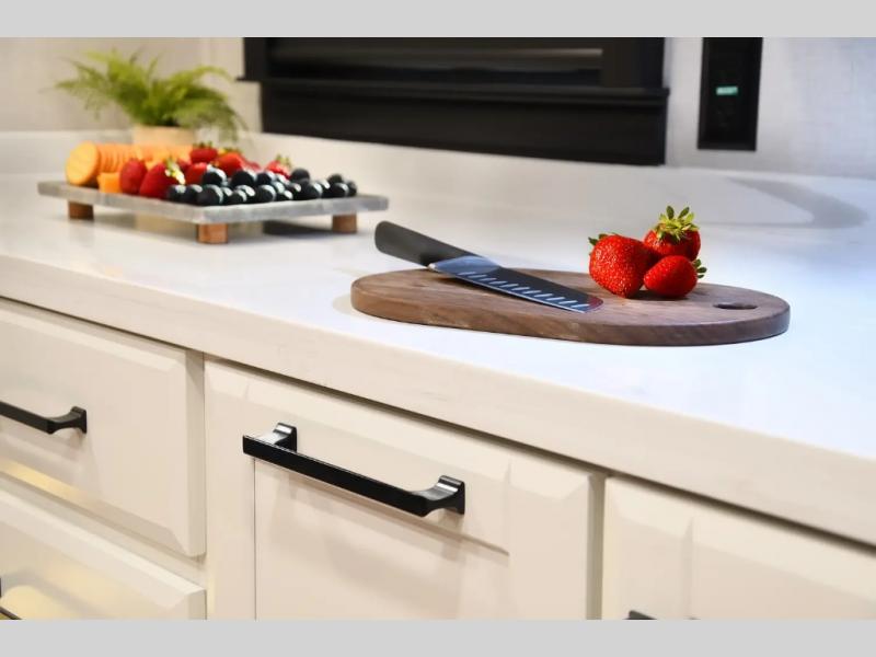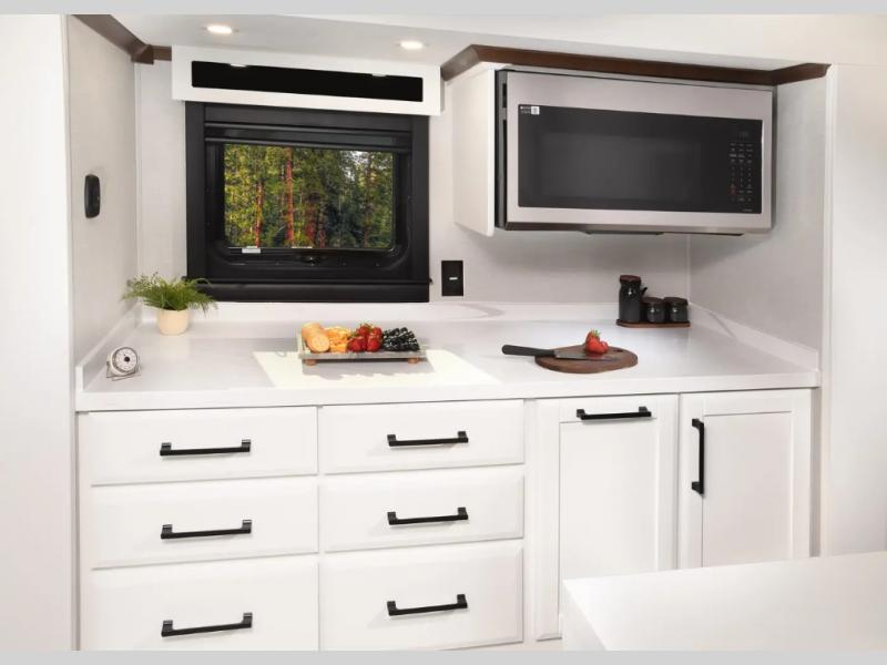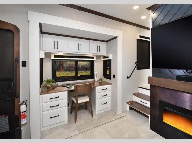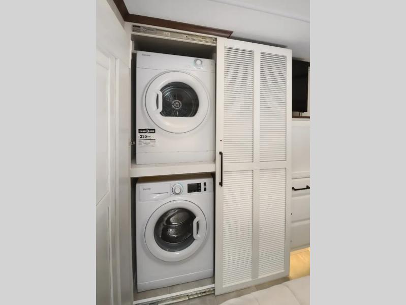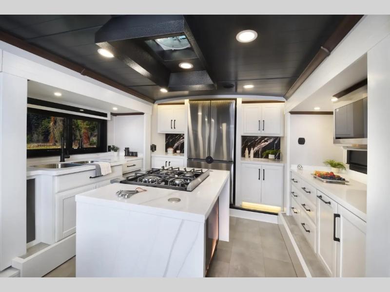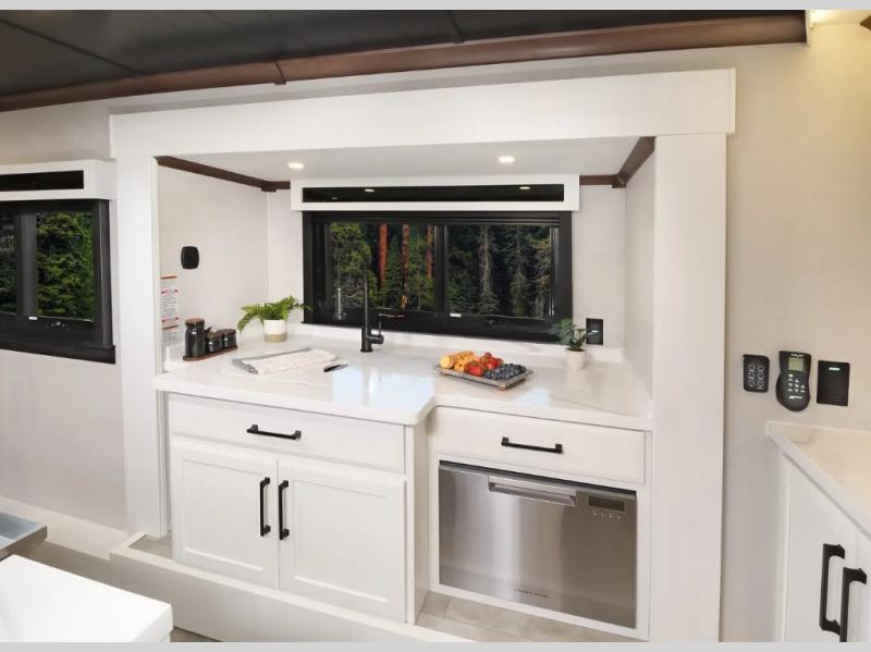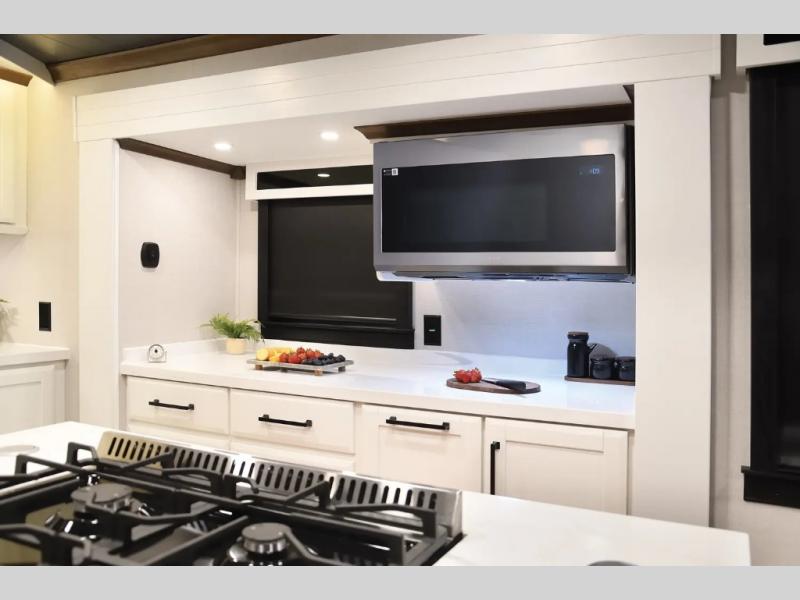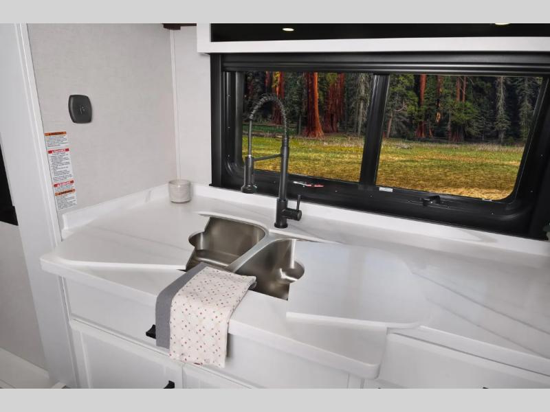 The Forest River RiverStone fifth wheels and toy haulers are luxurious units that have it all! You'll find an automatic six-point hydraulic level-up system to keep your unit in place, and there is preparation for a four-camera observation system. The King Wi-Fi Max router and omni-directional Wi-Fi antenna/extender will help you stay connected to the outside world, and you'll never have to overpack again since the Splendid “Astral” stackable washer and dryer will let you clean the small amount of clothes you've brought with you. Another high luxury is the Fischer Paykal dishwasher which will allow you to spend more time enjoying your camp life and less time cleaning up. Each unit is built with a Trail-Aire Road Armour suspension system, dual-pane frameless windows, a full docking station, a 190W solar panel, and a Firefly integrated touch control system.