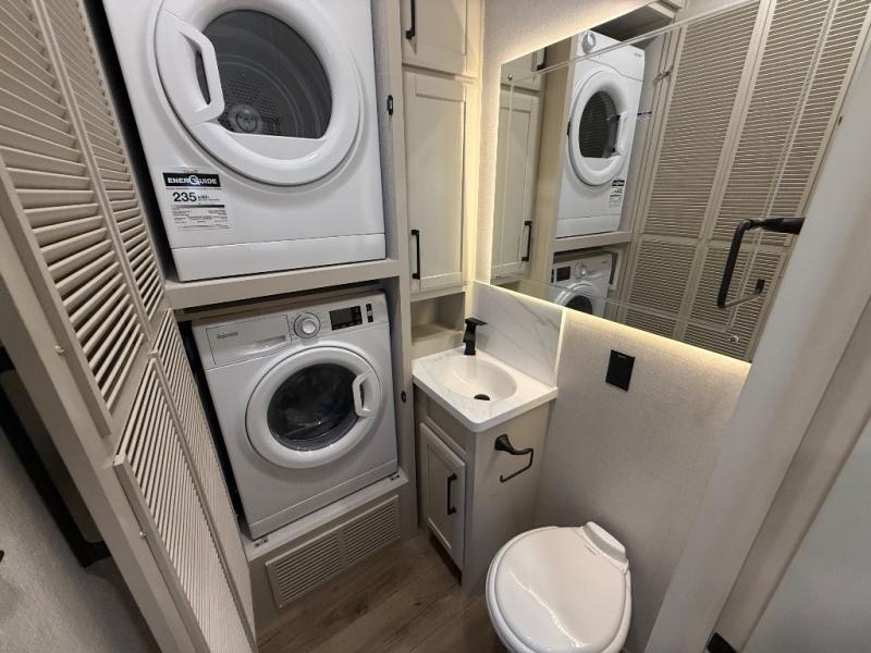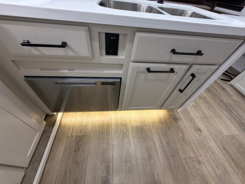 The Forest River RiverStone fifth wheels and toy haulers are luxurious units that have it all! You'll find an automatic six-point hydraulic level-up system to keep your unit in place, and there is preparation for a four-camera observation system. The TravlFi Journey XTR 4G/LTE router and WiFi extender will help you stay connected to the outside world, and you'll never have to overpack again since the Splendid “Astral” stackable washer and dryer will let you clean the small amount of clothes you've brought with you. Another high luxury is the Fischer Paykal dishwasher which will allow you to spend more time enjoying your camp life and less time cleaning up. Each unit is built with an LCI Road Armour suspension system, dual-pane frameless windows, a full docking station, a 200W solar panel, and a BMPro touch control system.