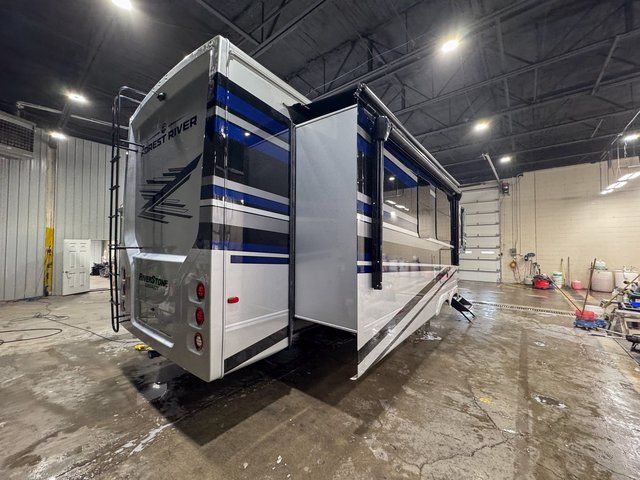If you’re looking for a fifth wheel that delivers true residential comfort, the Forest River RiverStone 43BFC stands in a class of its own. Available now at Royal RV Center in Middlebury, Indiana, this luxury fifth wheel is designed for extended stays, seasonal sites, or full-time RV living without sacrificing space or style.