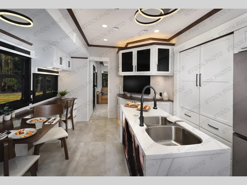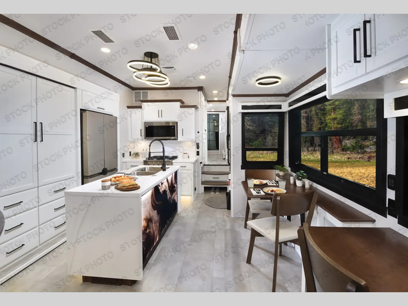 The Forest River RiverStone fifth wheels and toy haulers are luxurious units that have it all! You'll find an automatic six-point hydraulic level-up system to keep your unit in place, and there is preparation for a four-camera observation system. The TravlFi Journey XTR 4G/LTE router and WiFi extender will help you stay connected to the outside world, and you'll never have to overpack again since the Splendid “Astral” stackable washer and dryer will let you clean the small amount of clothes you've brought with you. Another high luxury is the Fischer Paykal dishwasher which will allow you to spend more time enjoying your camp life and less time cleaning up. Each unit is built with a LCI Road Armour suspension system, dual-pane frameless windows, a full docking station, a 200W solar panel, and a BMPro touch control system.