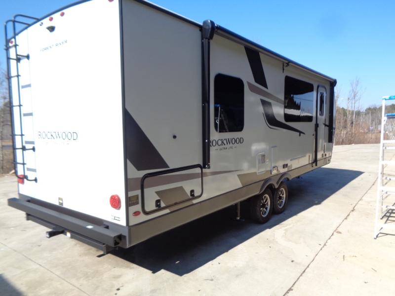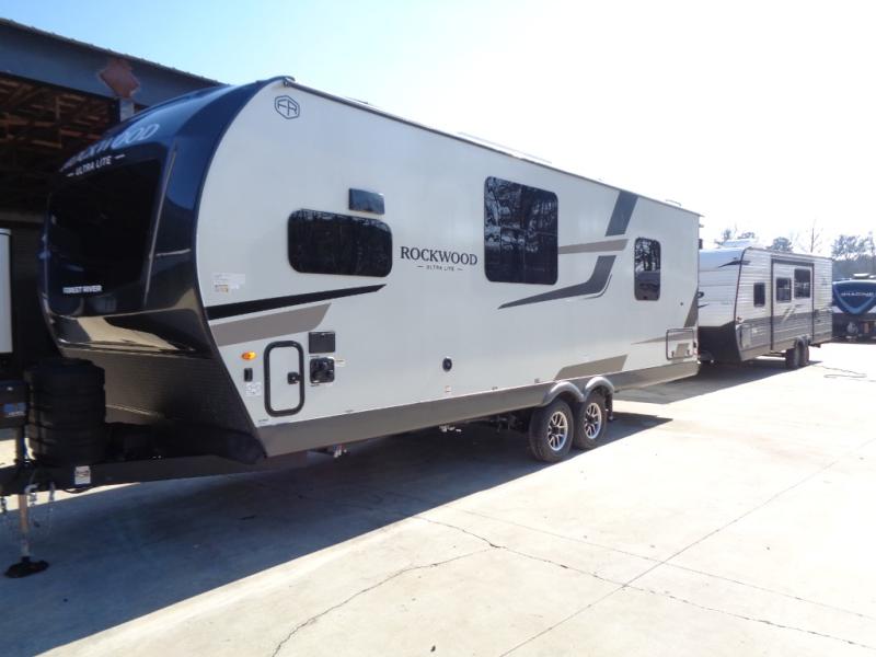 Each Rockwood Ultra Lite travel trailer by Forest River includes superior construction with a high gloss fiberglass cap, aluminum cage construction, and a power awning with LED lighting for a cozy and functional outdoor space. The torsion axle, power tongue jack will make towing smooth and hassle-free, along with the nitrogen filled, Goodyear Endurance tires and the tire pressure monitor system. Interior comforts include kitchen sink with high rise faucet, hidden hinge cabinet doors, and roller shades to name a few. Choose a Rockwood Ultra Lite travel trailer today!