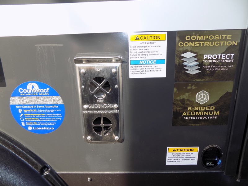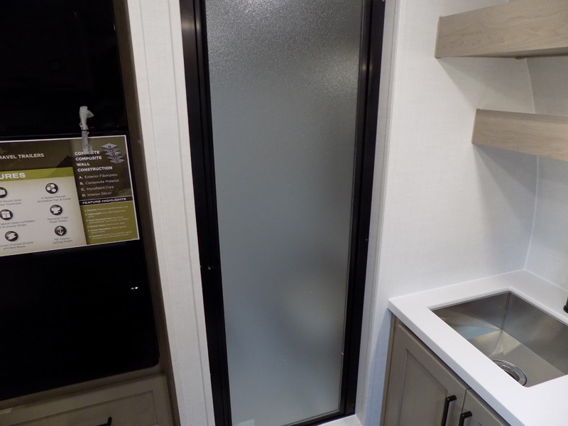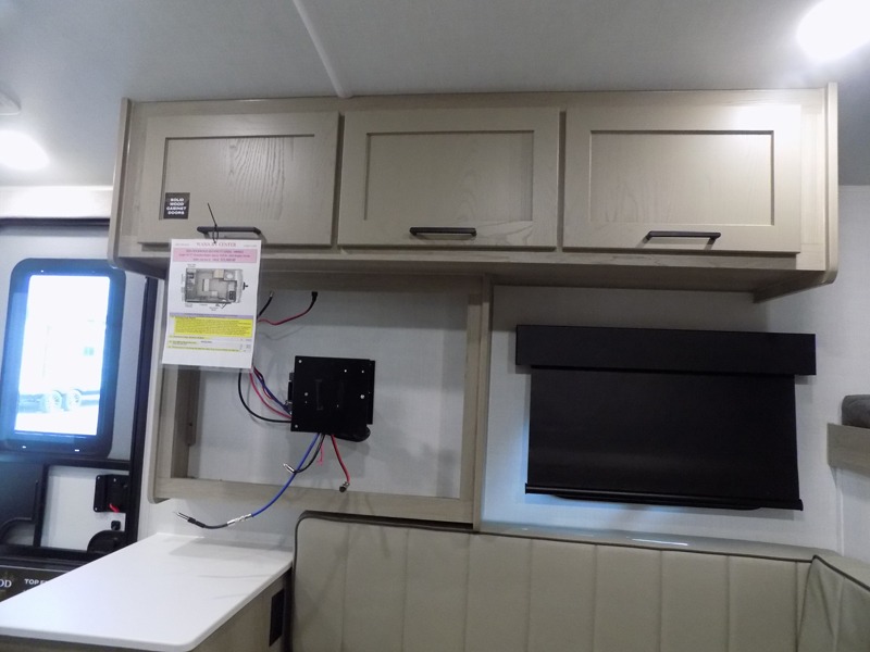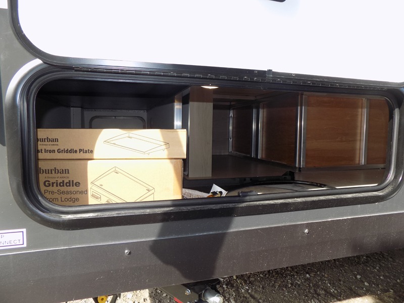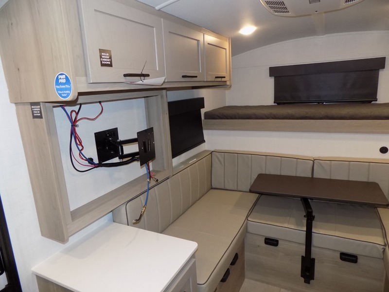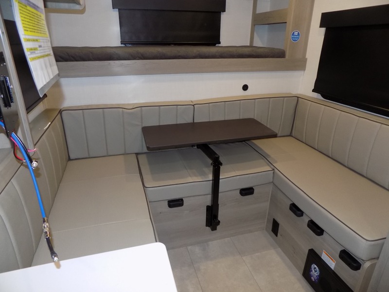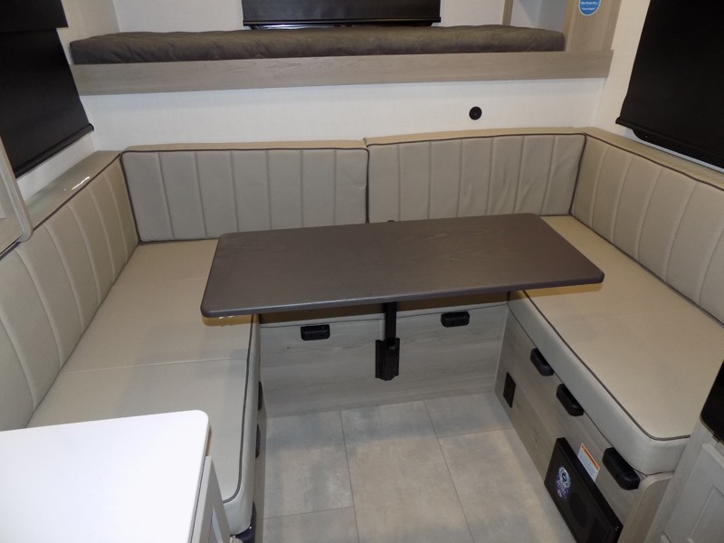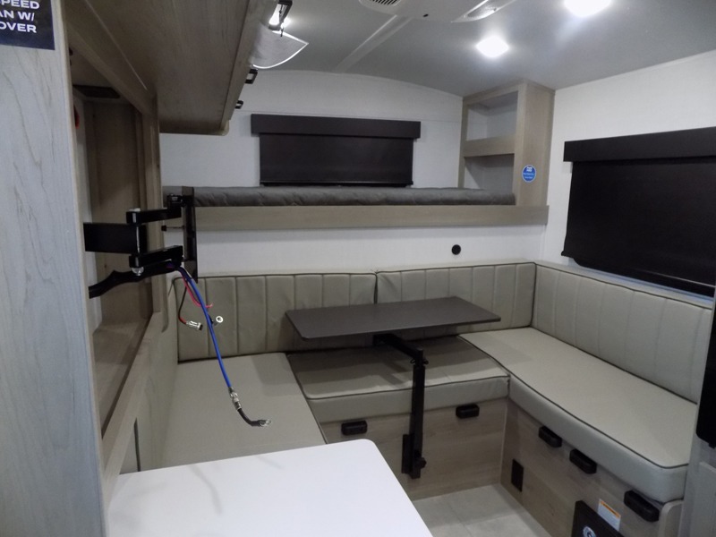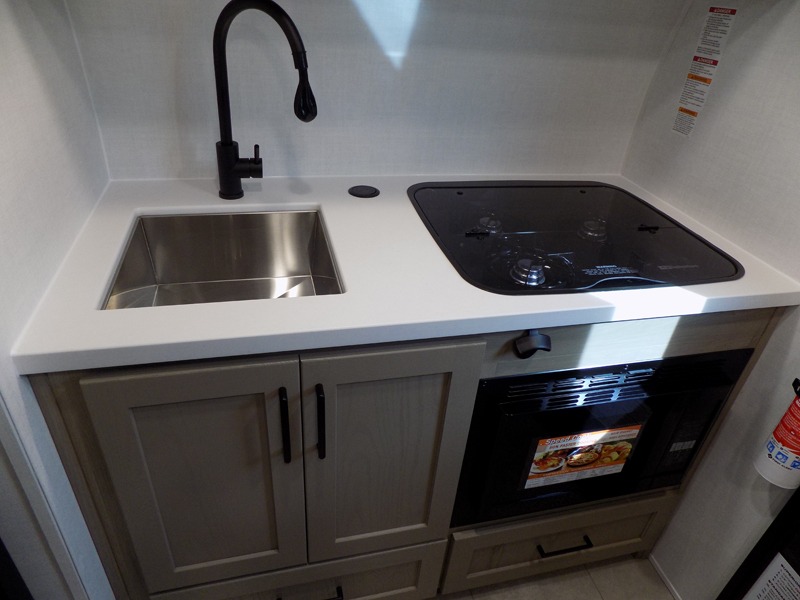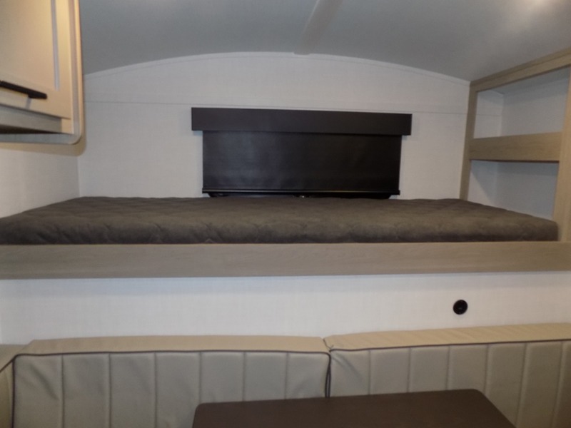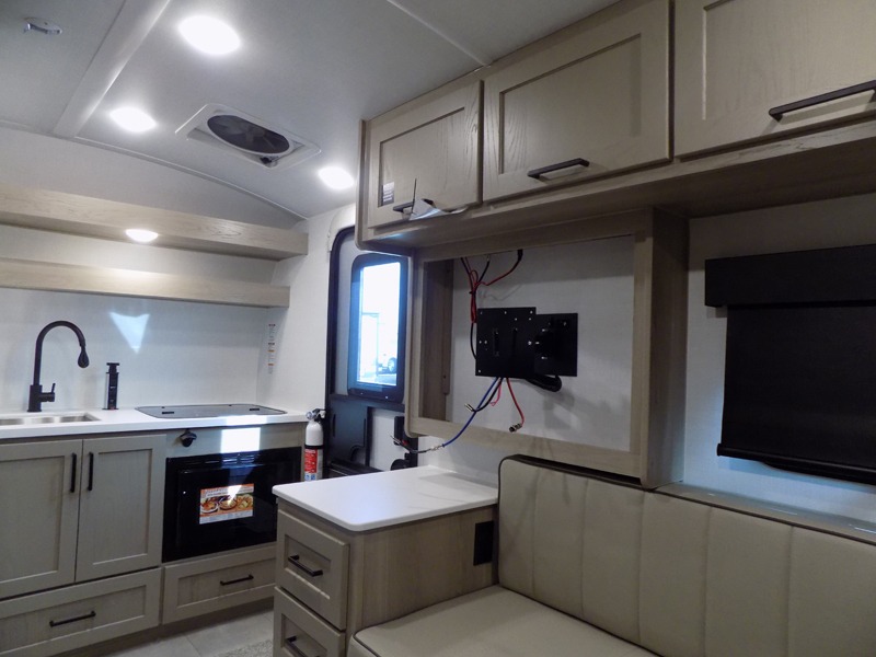 Whether you enjoy weekend trips to the woods or camping long term at the lake, this travel trailer will be perfect for your crew. There is a U-shaped dinette that can convert to sleeping space, plus a 26" x 74" bunk for an additional guest or two. You can prepare meals each day on the recessed cooktop or in the gas oven, and there is a 12V refrigerator for perishables. During the evening you can also enjoy the TV from the dinette, or you can step outside and cook on the outside kitchen and enjoy the cool night air. Before going to sleep you can wash up in the wet bath in the trailer for your convenience and comfort.