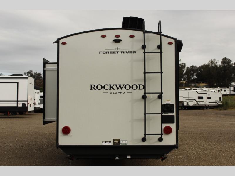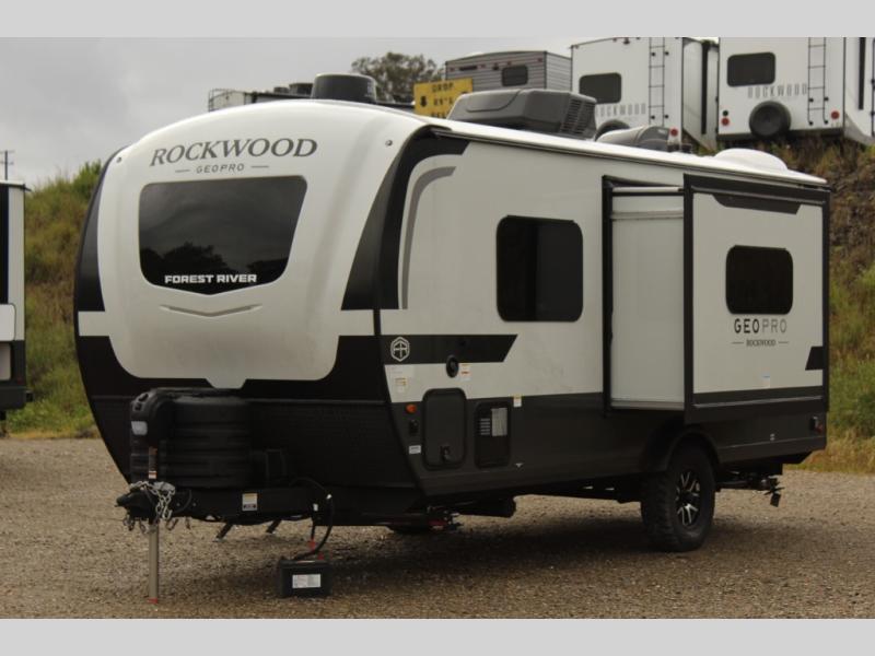 With any Rockwood GEO Pro travel trailer by Forest River you will enjoy easy towing, durable construction, and off-road capabilities with a fully laminated roof! Each model is constructed with complete composite wall construction for added strength and durability, and Dexter® axles that will make towing easier than ever. Inside, you'll find sleek back up camera prep for added security, a refrigerator and a microwave, plus many other interior amenities that will make you feel at home on the road.