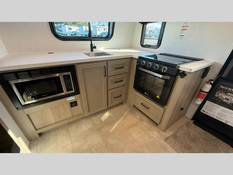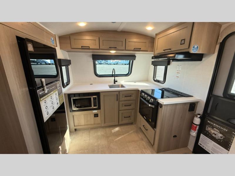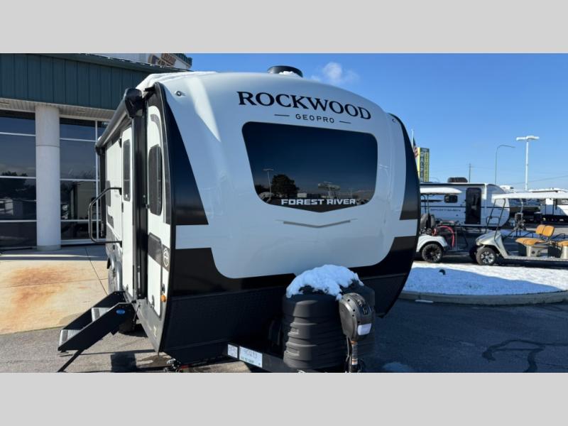 With any Rockwood GEO Pro travel trailer by Forest River you will enjoy easy towing, durable construction, and off-road capabilities with larger laminated roof! Each model is constructed with complete composite wall construction for added strength and durability, and Dexter® axles that will make towing easier than ever. Inside, you'll find sleek back up camera prep for added security, a refrigerator and a microwave, plus many other interior amenities that will make you feel at home on the road.
