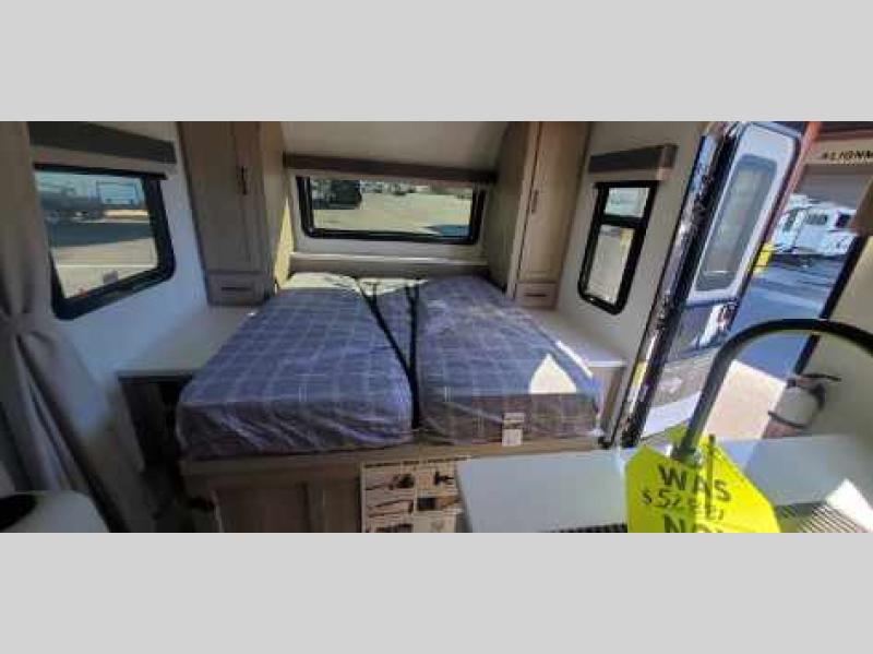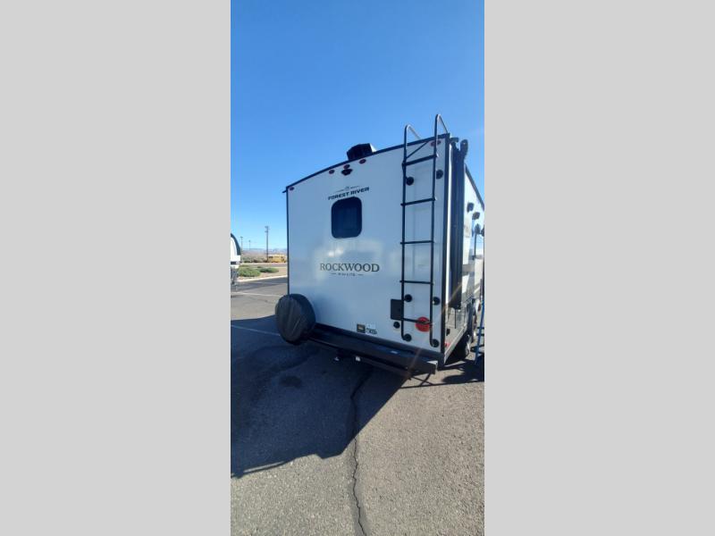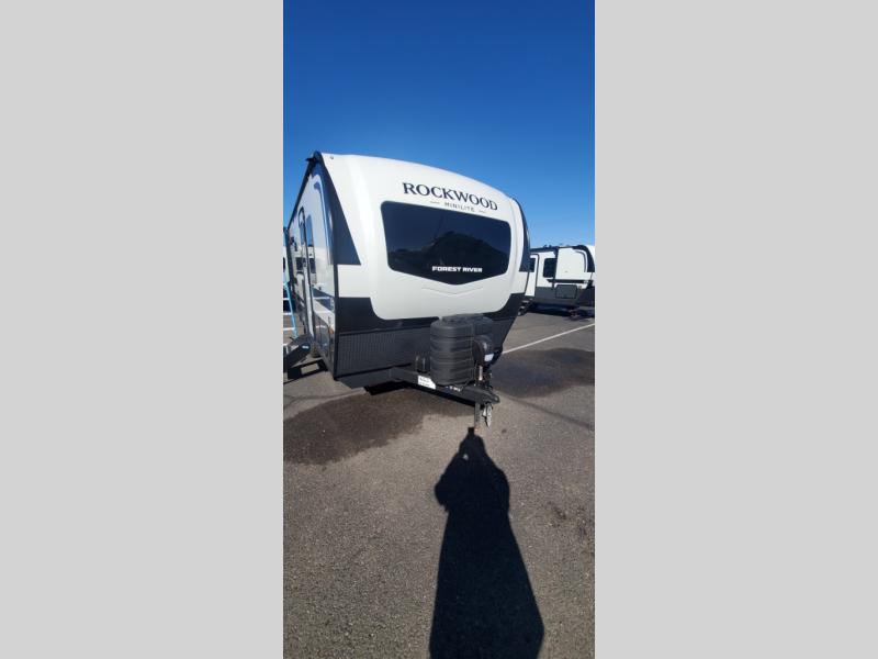 Each Rockwood Mini Lite travel trailer by Forest River is constructed with a fully laminated one-piece walkable roof, sleek frameless windows, and a six-sided full aluminum frame for strength and durability. The 12V thermostatically controlled heated tanks, plus radiant foil in the underbelly will allow you to camp well into the colder months, and the 200W roof solar panel will be perfect for a little off-gridding. Each model includes solid surface kitchen countertops, hidden hinge cabinet doors, roller shades, plus many more interior features. Having an AIR 360+ omnidirectional antenna with WiFi prep on board gives you the option to get some work done if it's needed, and the power tongue jack provides hassle-free set up, so you can enjoy more time relaxing!
