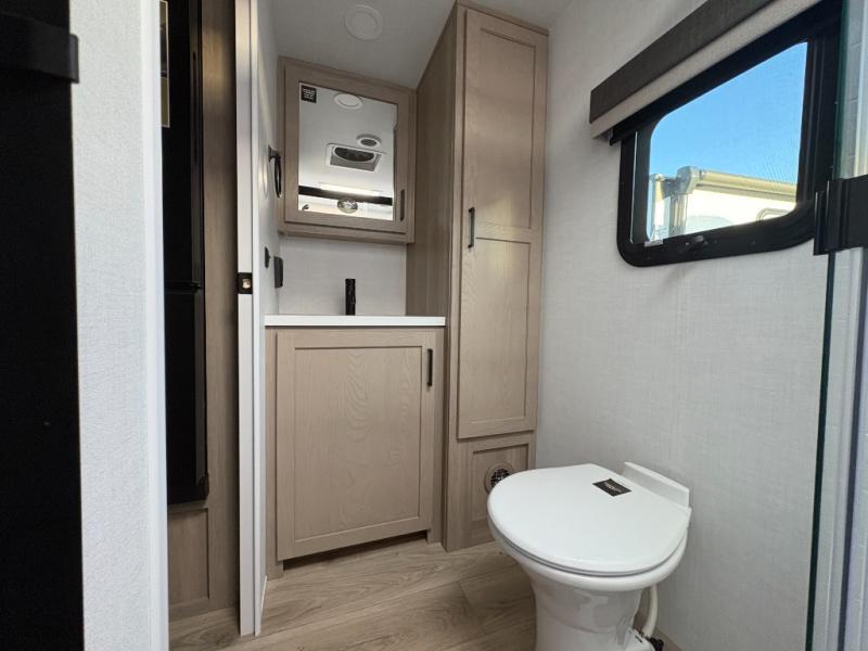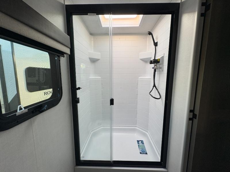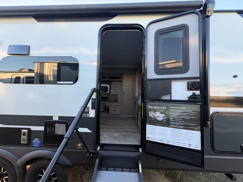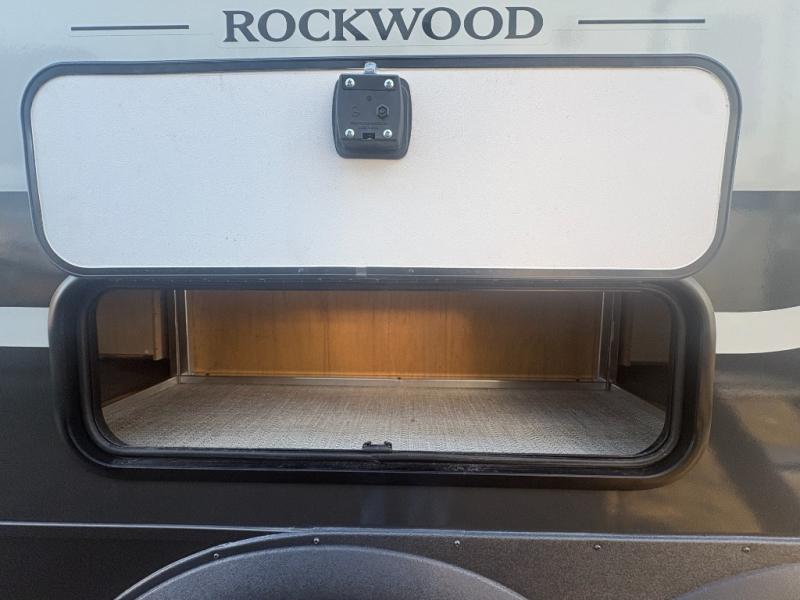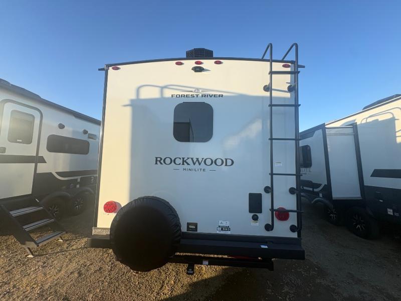 Each Rockwood Mini Lite travel trailer by Forest River is constructed with a fully laminated one-piece walkable roof, sleek frameless windows, and a six-sided full aluminum frame for strength and durability. The 12V thermostatically controlled heated tanks, plus radiant foil in the underbelly will allow you to camp well into the colder months, and the 200W roof solar panel will be perfect for a little off-gridding. Each model includes solid surface kitchen countertops, hidden hinge cabinet doors, roller shades, plus many more interior features. Having an AIR 360+ omnidirectional antenna with WiFi prep on board gives you the option to get some work done if it's needed, and the power tongue jack provides hassle-free set up, so you can enjoy more time relaxing!