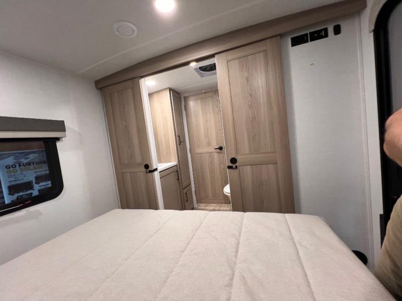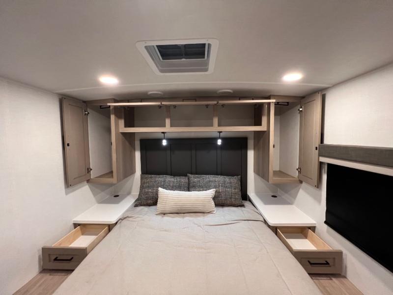 After a long day of exploring, retreat to the private rear bedroom featuring an RV queen bed, dual wardrobes, and optional TV hookups so you can enjoy movie nights in total comfort. Whether you're a light packer or a travel pro, there’s plenty of storage for everything you need to bring along.