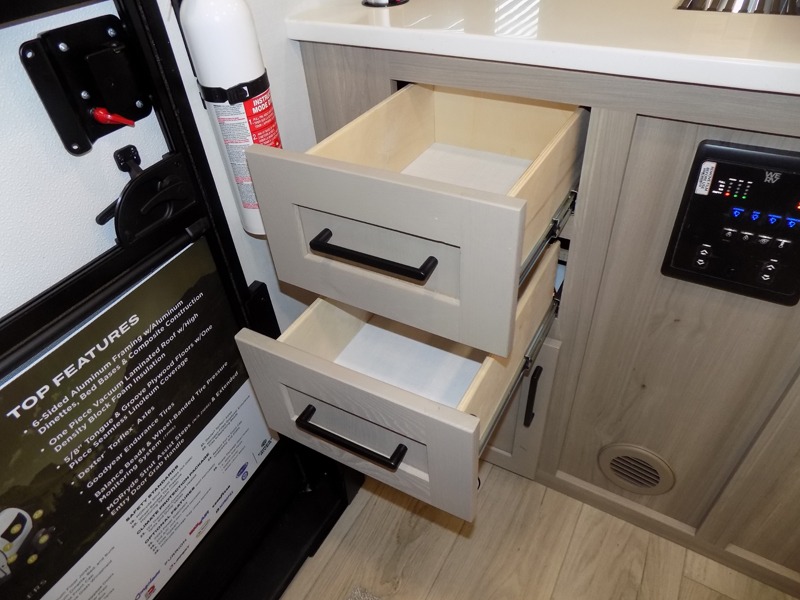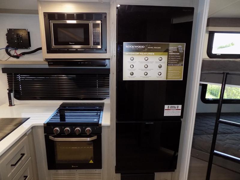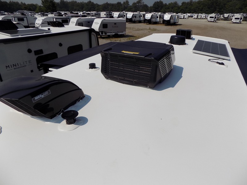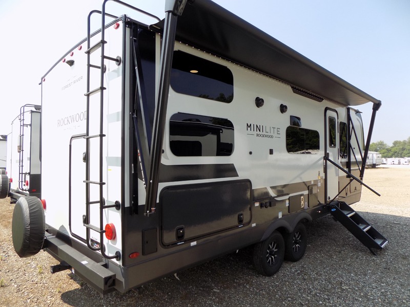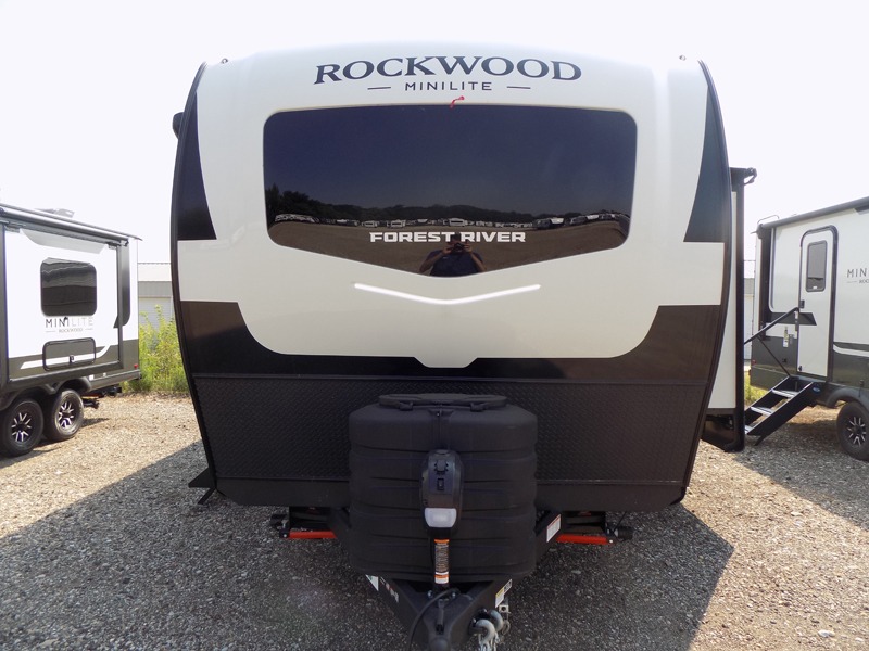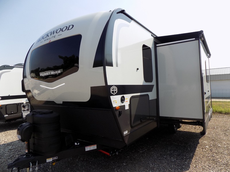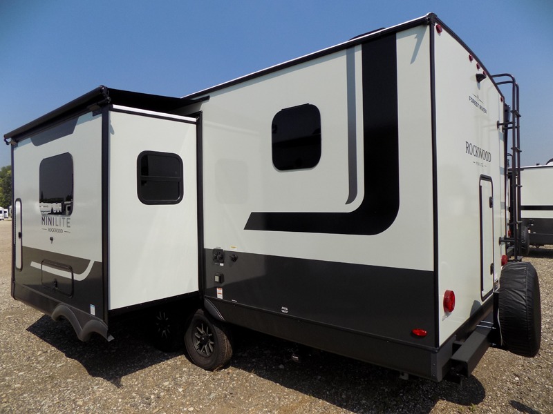 Each Rockwood Mini Lite travel trailer by Forest River is constructed with a fully laminated one-piece walkable roof, sleek frameless windows, and a six-sided full aluminum frame for strength and durability. The 12V thermostatically controlled heated tanks, plus radiant foil in the underbelly will allow you to camp well into the colder months, and the 200W roof solar panel will be perfect for a little off-gridding. Each model includes solid surface kitchen countertops, hidden hinge cabinet doors, roller shades, plus many more interior features. Having an AIR 360+ omnidirectional antenna with WiFi prep on board gives you the option to get some work done if it's needed, and the power tongue jack provides hassle-free set up, so you can enjoy more time relaxing!