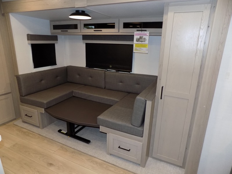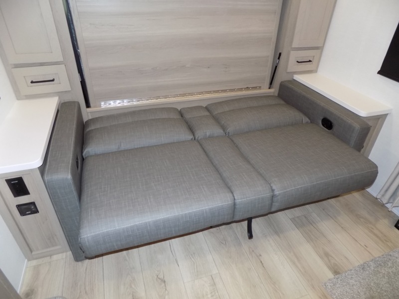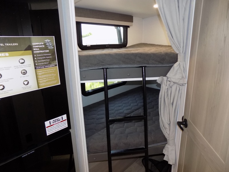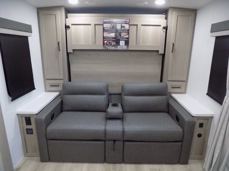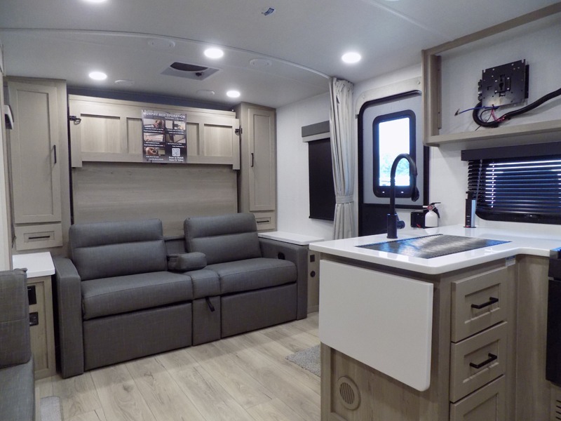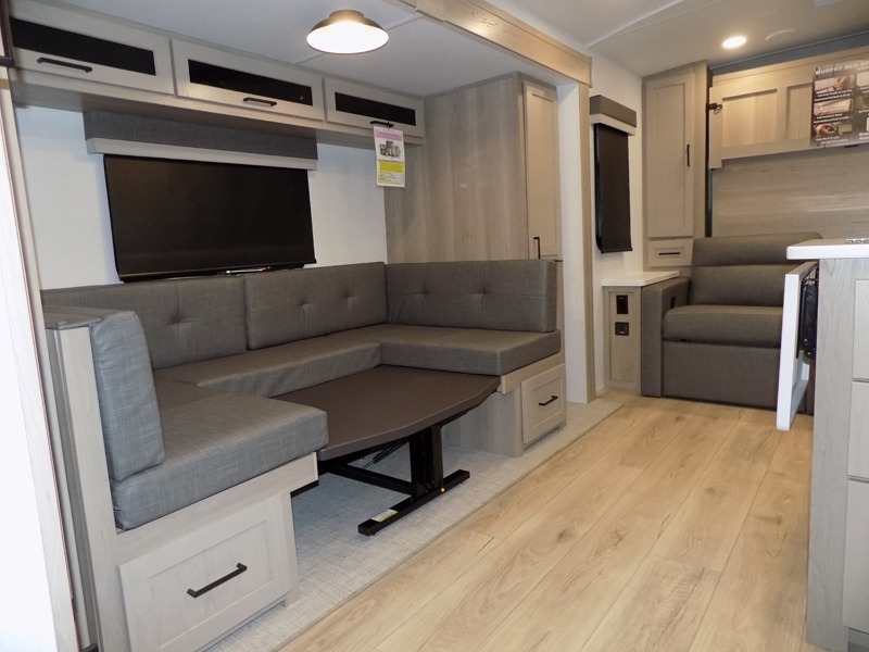 Finally, a lightweight travel trailer with double-size bunks for the kids or your guests! You'll find the versatile Murphy bed up front will be super convenient when you need more space to move around, and the 72" sofa will provide comfy seating space when the bed is put up. This model also includes a U-shaped dinette slide perfect to dine around, play games, and sleep additional guests. A TV in the main living area will allow you to watch your favorite shows in the evenings, or you may just find yourselves outdoors under the 18' power awning with LED lights. And check out the pass-through storage, plus additional exterior storage for your hiking gear!