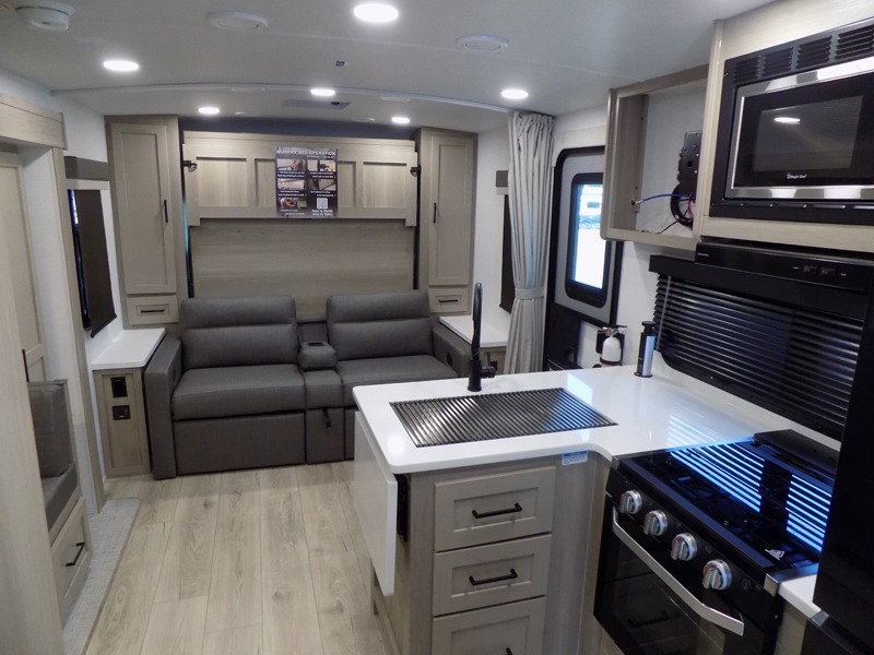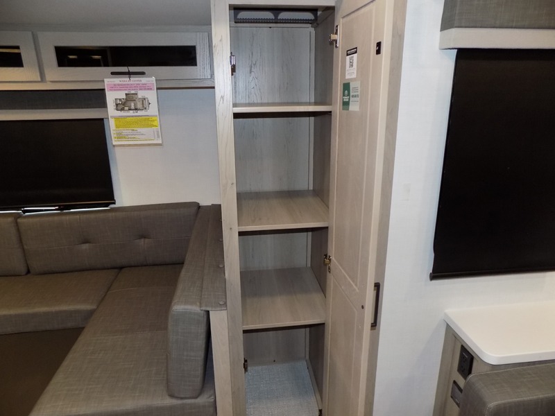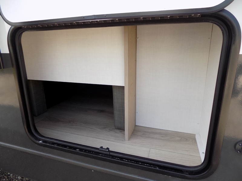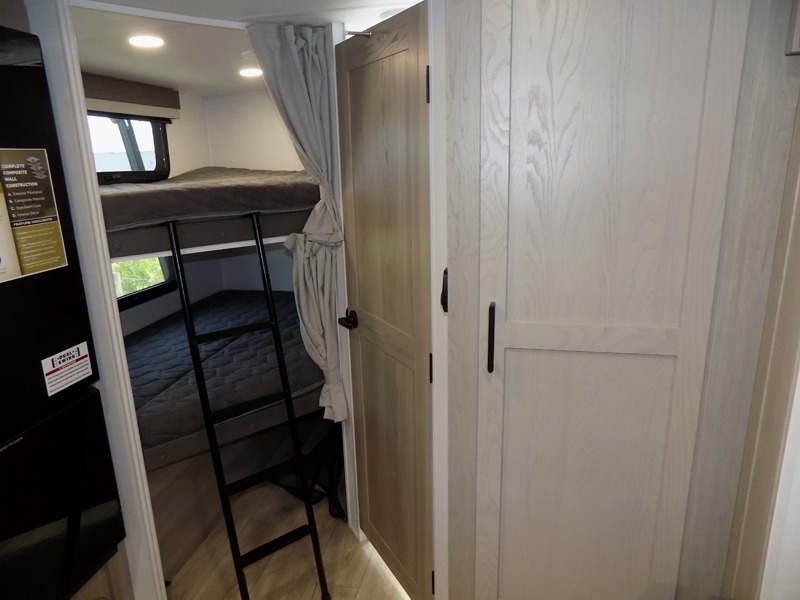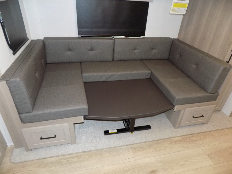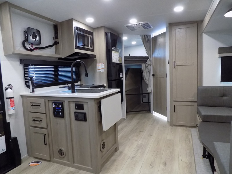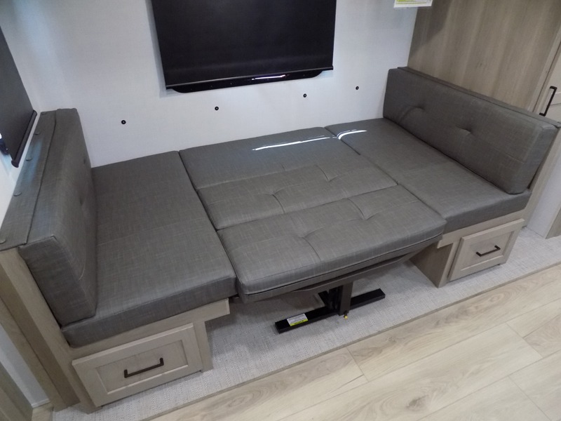 Finally, a lightweight travel trailer with double-size bunks for the kids or your guests! You'll find the versatile Murphy bed up front will be super convenient when you need more space to move around, and the 72" sofa will provide comfy seating space when the bed is put up. This model also includes a U-shaped dinette slide perfect to dine around, play games, and sleep additional guests. A TV in the main living area will allow you to watch your favorite shows in the evenings, or you may just find yourselves outdoors under the 18' power awning with LED lights. And check out the pass-through storage, plus additional exterior storage for your hiking gear!