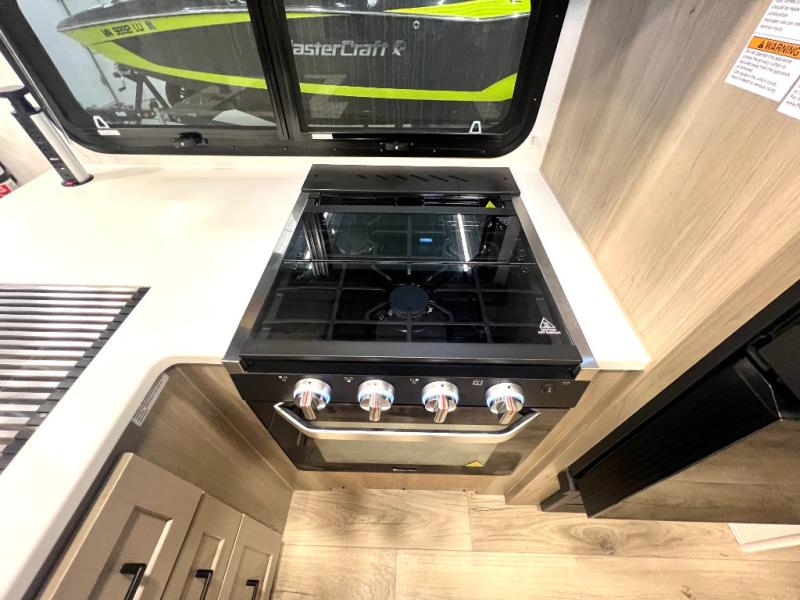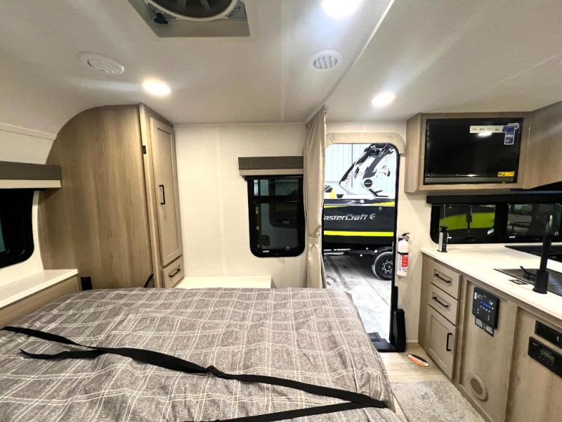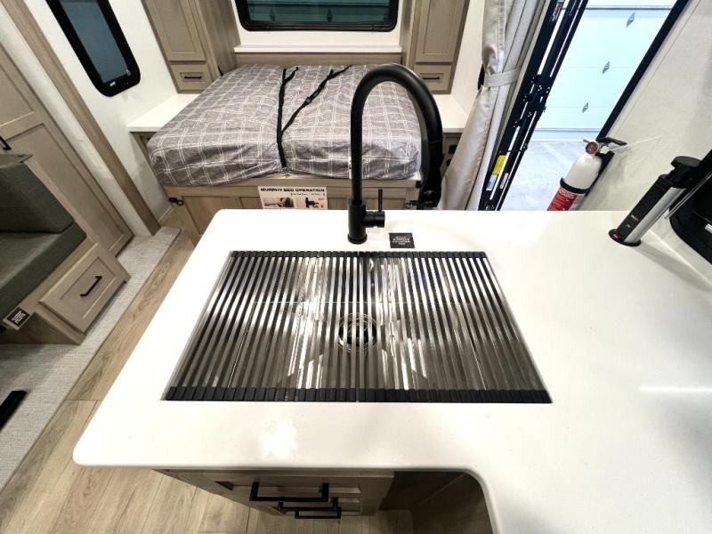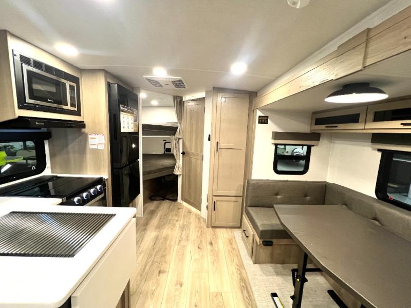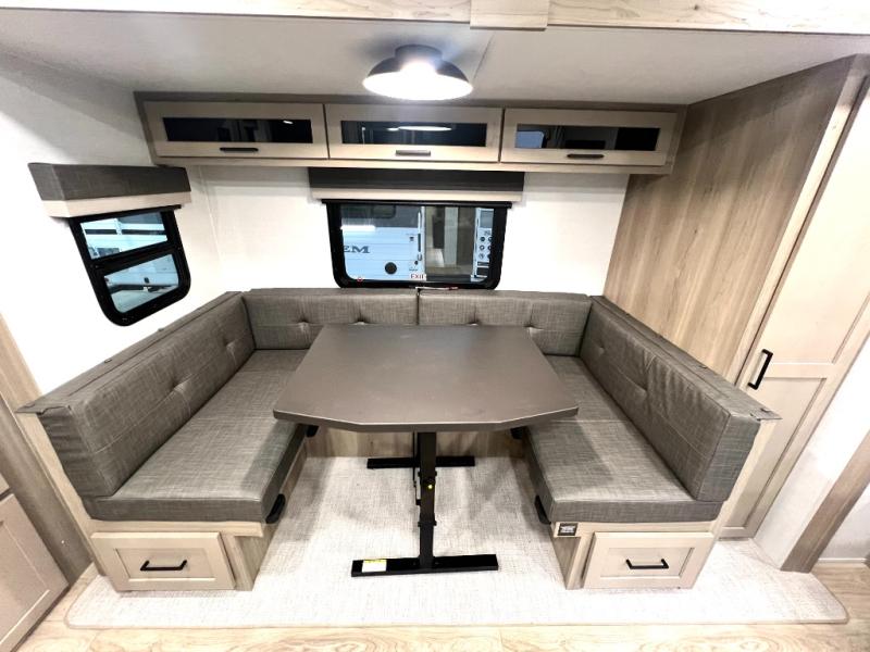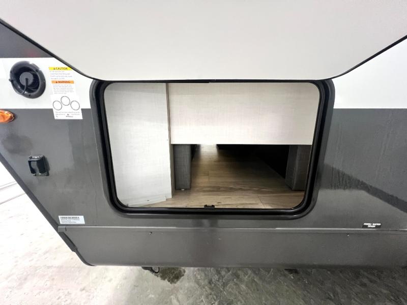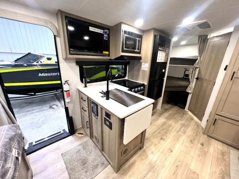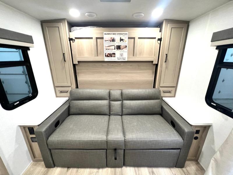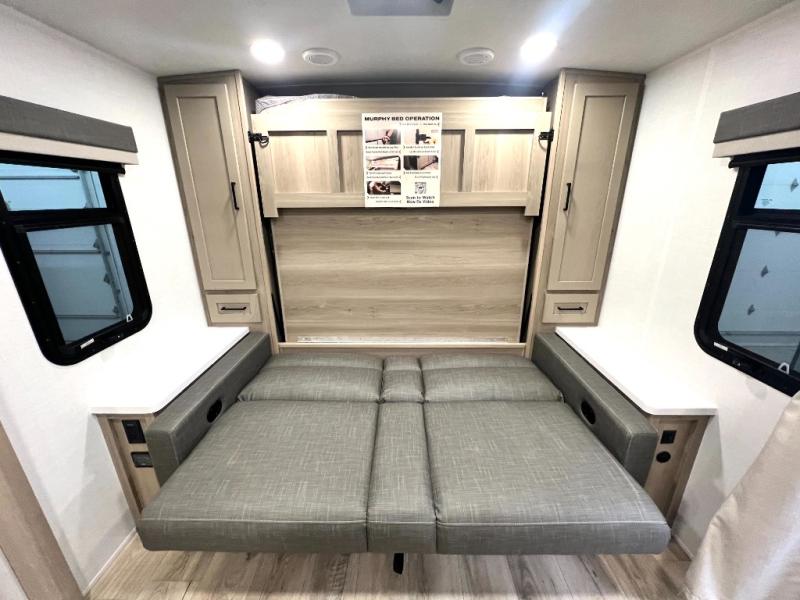 Finally, a lightweight travel trailer with double-size bunks for the kids or your guests! You'll find the versatile Murphy bed up front will be super convenient when you need more space to move around, and the 72" sofa will provide comfy seating space when the bed is put up. This model also includes a U-shaped dinette slide perfect to dine around, play games, and sleep additional guests. A TV in the main living area will allow you to watch your favorite shows in the evenings, or you may just find yourselves outdoors under the 18' power awning with LED lights. And check out the pass-through storage, plus additional exterior storage for your hiking gear!