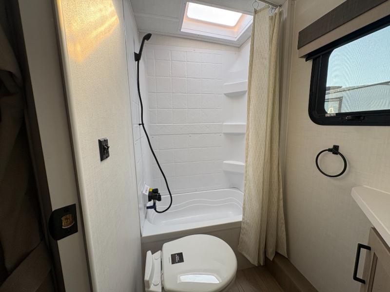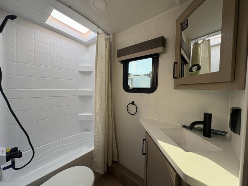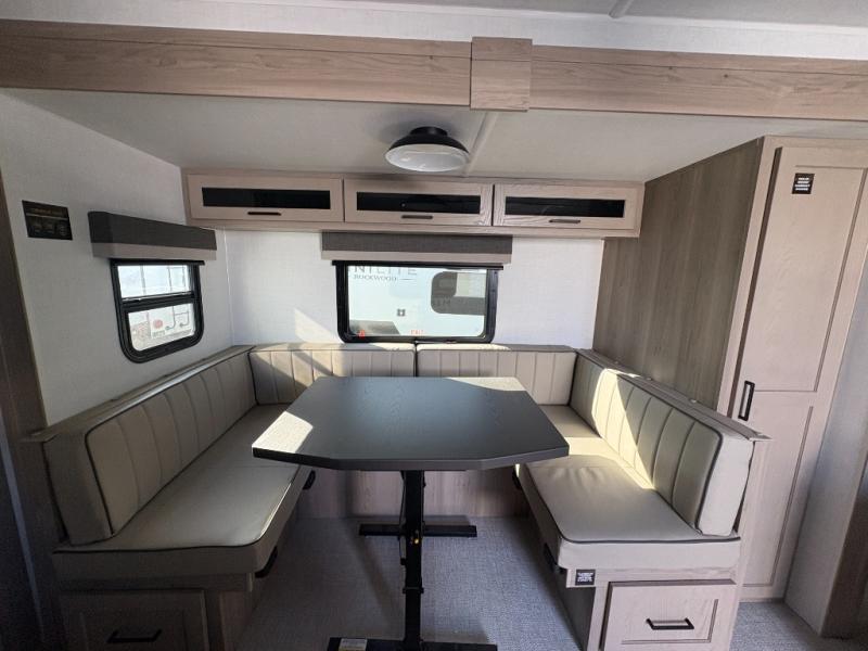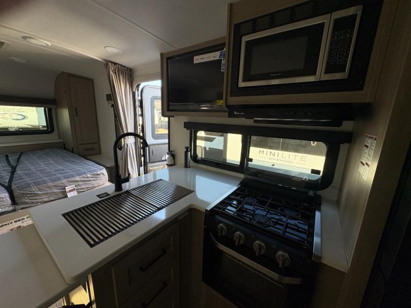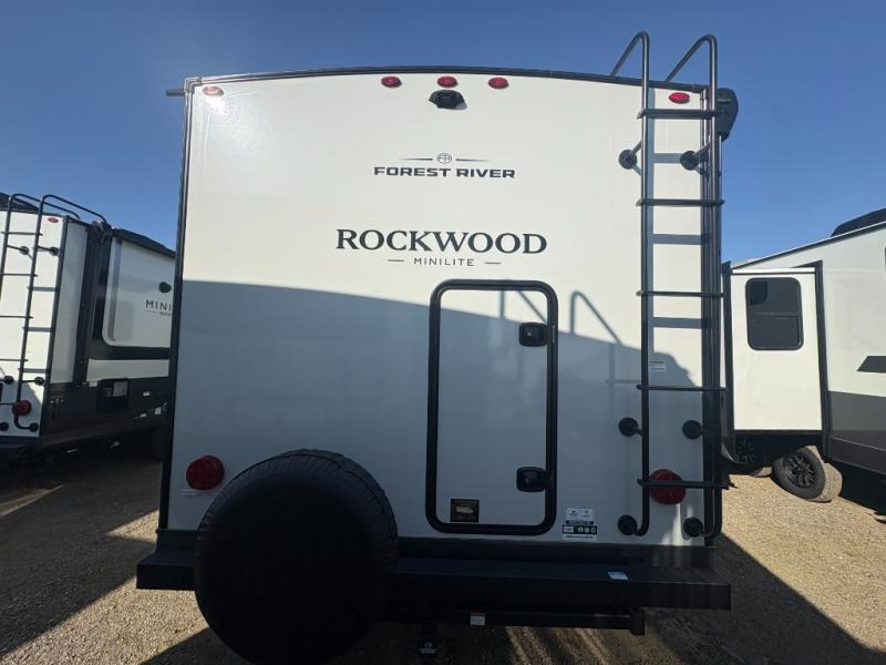 Each Rockwood Mini Lite travel trailer by Forest River is constructed with a fully laminated one-piece walkable roof, sleek frameless windows, and a six-sided full aluminum frame for strength and durability. The 12V thermostatically controlled heated tanks, plus radiant foil in the underbelly will allow you to camp well into the colder months, and the 200W roof solar panel will be perfect for a little off-gridding. Each model includes solid surface kitchen countertops, hidden hinge cabinet doors, roller shades, plus many more interior features. Having an AIR 360+ omnidirectional antenna with WiFi prep on board gives you the option to get some work done if it's needed, and the power tongue jack provides hassle-free set up, so you can enjoy more time relaxing!