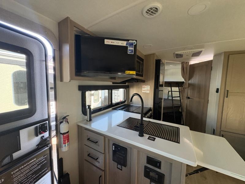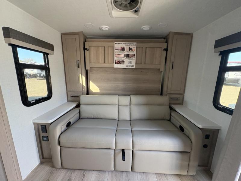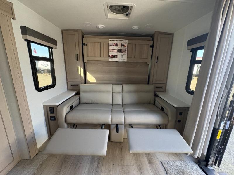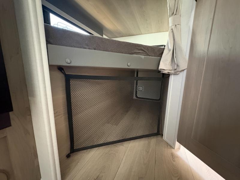 Finally, a lightweight travel trailer with double-size bunks for the kids or your guests! You'll find the versatile Murphy bed up front will be super convenient when you need more space to move around, and the 72" sofa will provide comfy seating space when the bed is put up. This model also includes a U-shaped dinette slide perfect to dine around, play games, and sleep additional guests. A TV in the main living area will allow you to watch your favorite shows in the evenings, or you may just find yourselves outdoors under the 18' power awning with LED lights. And check out the pass-through storage, plus additional exterior storage for your hiking gear!
