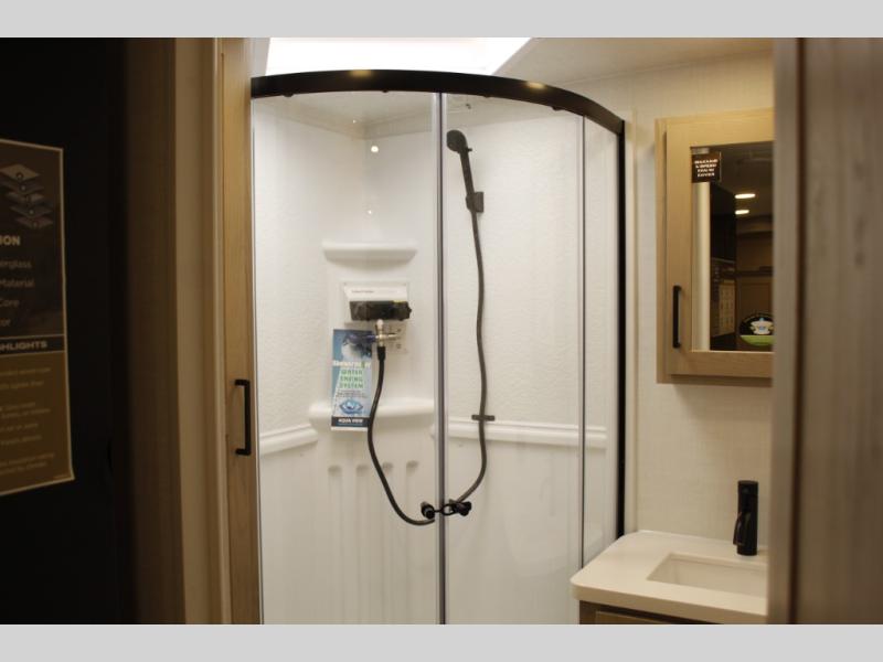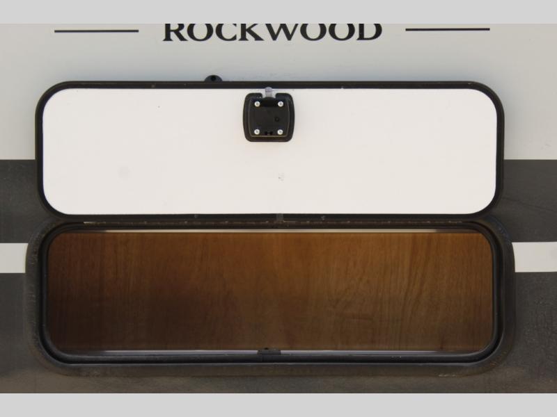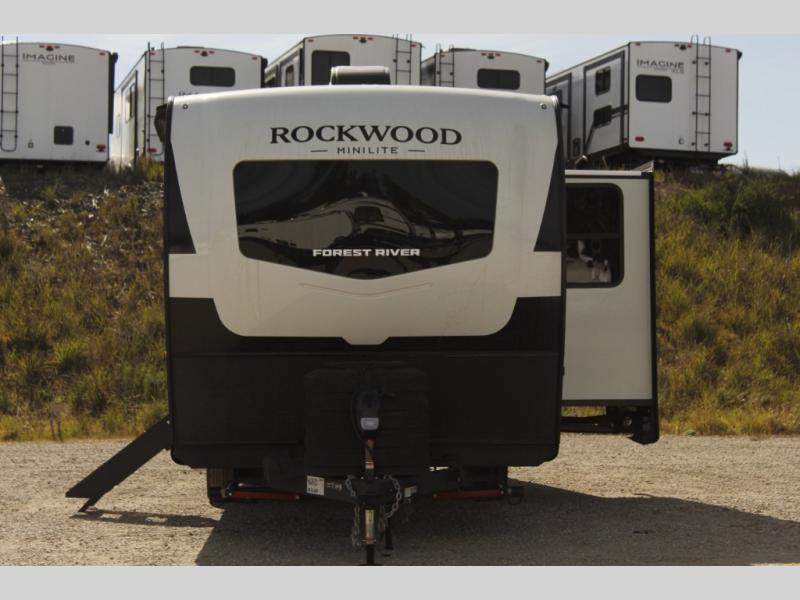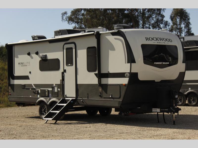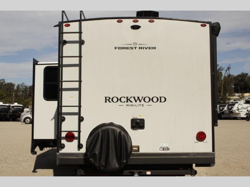 Each Rockwood Mini Lite travel trailer by Forest River is constructed with a fully laminated one-piece walkable roof, sleek frameless windows, and a six-sided full aluminum frame for strength and durability. The 12V thermostatically controlled heated tanks, plus radiant foil in the underbelly will allow you to camp well into the colder months, and the 200W roof solar panel will be perfect for a little off-gridding. Each model includes solid surface kitchen countertops, hidden hinge cabinet doors, roller shades, plus many more interior features. Having an AIR 360+ omnidirectional antenna with WiFi prep on board gives you the option to get some work done if it's needed, and the power tongue jack provides hassle-free set up, so you can enjoy more time relaxing!