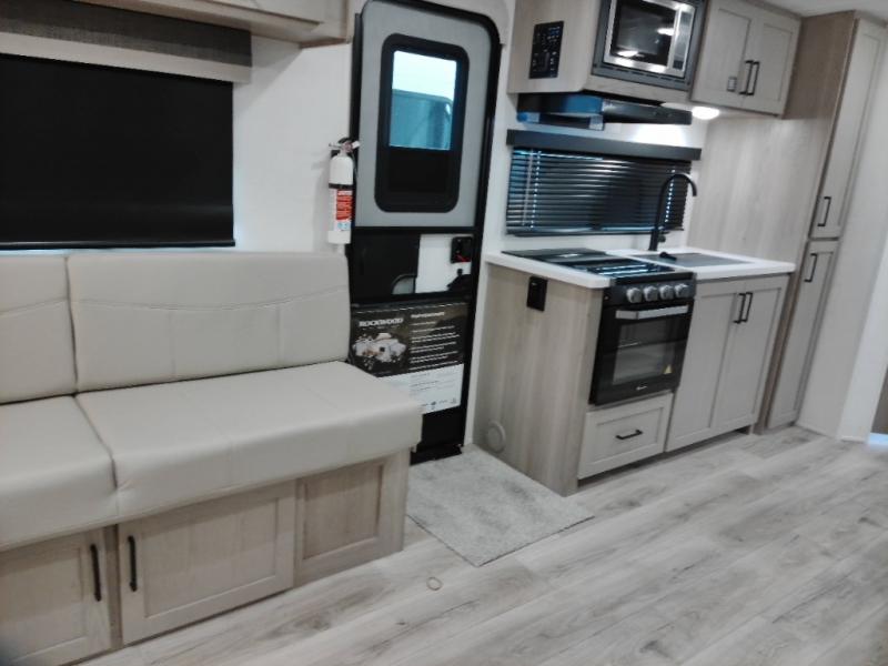 With any Rockwood Roo expandable travel trailer by Forest River you will enjoy smooth towing thanks to the Dexter sprung axles and nitrogen-filled tires. The key-Alike locks provide easy access in and out of your trailer, and each model includes Winegard Air 360+ prepped for WiFi for all your connection needs. Each model is constructed with a fully laminated walkable roof, a 6-sided full-aluminum frame, and complete composite wall construction for added durability. You will enjoy many interior comforts, including residential look kitchen countertops, roller shades, hidden hinge cabinet doors, and more features found within the Near Nature Package!