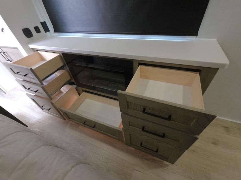 A pull-out desk transforms your living area into a comfortable remote workspace—perfect for working on the go or staying connected while traveling.