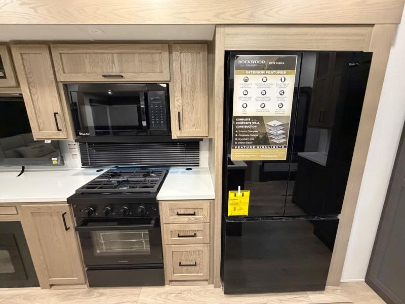 With any Rockwood Signature fifth wheel or travel trailer by Forest River RV, you will enjoy superior construction that includes a fully laminated walkable roof, 6-sided full-aluminum frame, and a painted fiberglass front cap with Clear Coat for added durability. Outside, you'll find a 200W solar panel for off-grid capabilities, slam baggage doors, and Key-Alike lock system for added convenience. Head inside to find soft close roller bearing drawers, roller shades, and residential style gas range. These travel trailer and fifth wheels also feature Goodyear Endurance tires with a tire pressure monitoring system plus Dexter Torflex torsion axles for smooth towing!