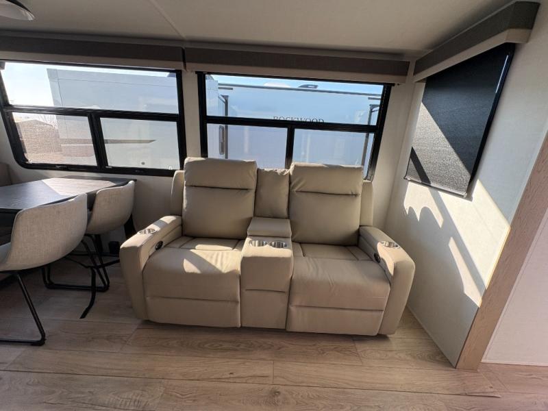With any Rockwood Signature fifth wheel or travel trailer by Forest River RV, you will enjoy superior construction that includes a fully laminated walkable roof, 6-sided full-aluminum frame, and a painted fiberglass front cap with Clear Coat for added durability. Outside, you'll find a 200W solar panel for off-grid capabilities, slam baggage doors, and Key-Alike lock system for added convenience. Head inside to find soft close roller bearing drawers, roller shades, and residential style gas range. These travel trailer and fifth wheels also feature Goodyear Endurance tires with a tire pressure monitoring system plus Dexter Torflex torsion axles for smooth towing!
