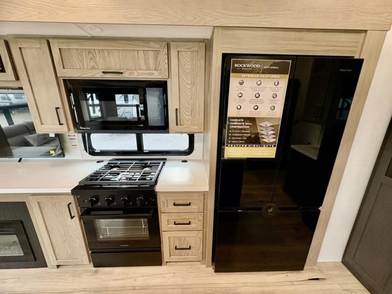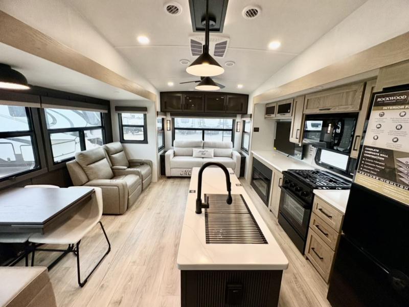 With any Rockwood Signature fifth wheel or travel trailer by Forest River RV, you will enjoy superior construction that includes a fully laminated walkable roof, 6-sided full-aluminum frame, and a painted fiberglass front cap with Clear Coat for added durability. Outside, you'll find a 200W solar panel for off-grid capabilities, slam baggage doors, and Key-Alike lock system for added convenience. Head inside to find soft close roller bearing drawers, roller shades, and residential style gas range. These travel trailer and fifth wheels also feature Goodyear Endurance tires with a tire pressure monitoring system plus Dexter Torflex torsion axles for smooth towing!