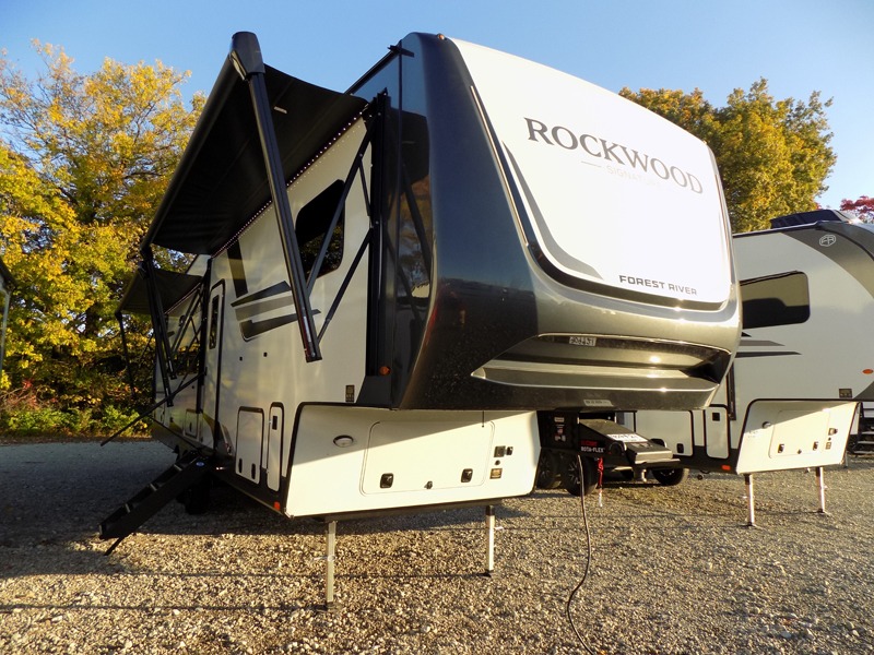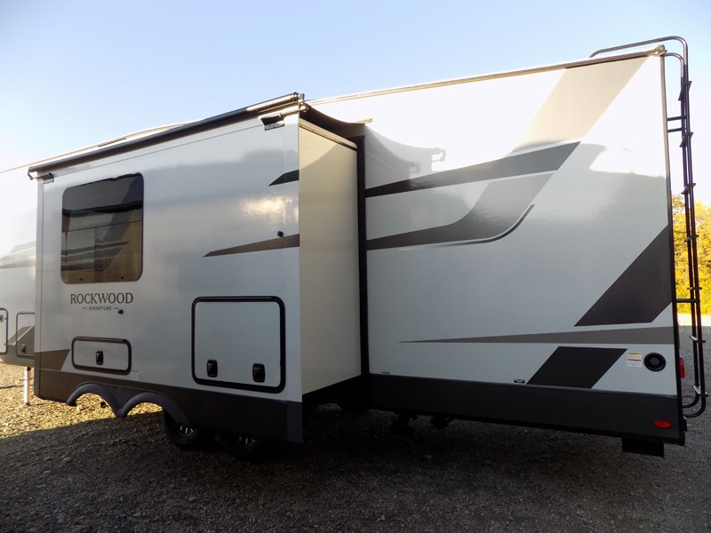 With any Rockwood Signature fifth wheel or travel trailer by Forest River RV, you will enjoy superior construction that includes a fully laminated walkable roof, 6-sided full-aluminum frame, and a painted fiberglass front cap with Clear Coat for added durability. Outside, you'll find a 200W solar panel for off-grid capabilities, slam baggage doors, and Key-Alike lock system for added convenience. Head inside to find soft close roller bearing drawers, roller shades, and residential style gas range. These travel trailer and fifth wheels also feature Goodyear Endurance tires with a tire pressure monitoring system plus Dexter Torflex torsion axles for smooth towing!