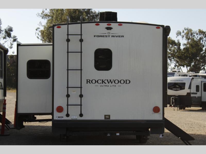 Each Rockwood Ultra Lite travel trailer by Forest River includes superior construction with a high gloss fiberglass cap, aluminum cage construction, and a power awning with LED lighting for a cozy and functional outdoor space. The torsion axle, power tongue jack will make towing smooth and hassle-free, along with the nitrogen filled, Goodyear Endurance tires and the tire pressure monitor system. Interior comforts include kitchen sink with high rise faucet, hidden hinge cabinet doors, and roller shades to name a few. Choose a Rockwood Ultra Lite travel trailer today!