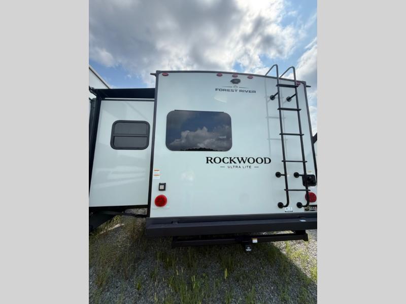 Each Rockwood Ultra Lite travel trailer by Forest River includes superior construction with a high gloss fiberglass cap, aluminum cage construction, and a power awning with LED lighting for a cozy and functional outdoor space. The torsion axle, power tongue jack will make towing smooth and hassle-free, along with the nitrogen filled, Goodyear Endurance tires and the tire pressure monitor system. Interior comforts include kitchen sink with high rise faucet, hidden hinge cabinet doors, and roller shades to name a few. Choose a Rockwood Ultra Lite travel trailer today!